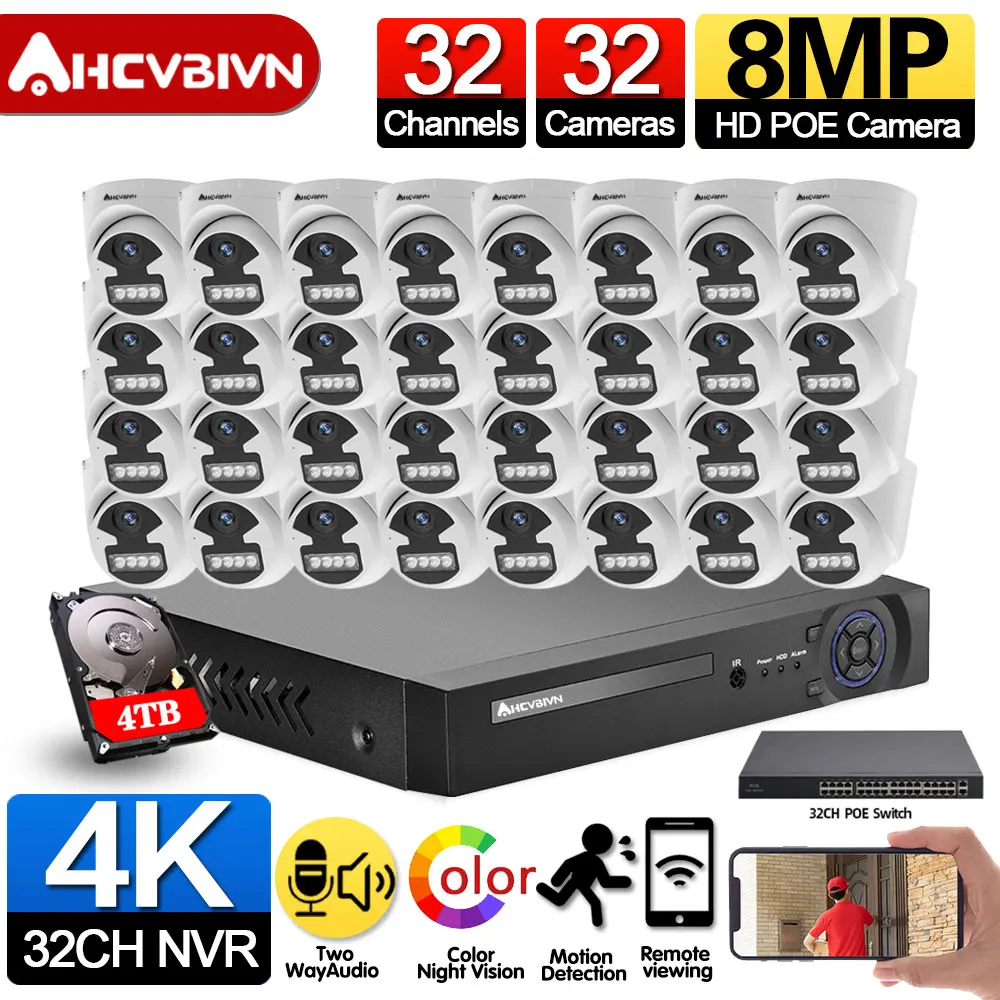 8MP 5MP 16/24/32CH NVR Камера видеонаблюдения системы безопасности 4K двухканальную аудиосвязь POE внутри помещений на открытом воздухе Цвет ночного видения комплект видеонаблюдения