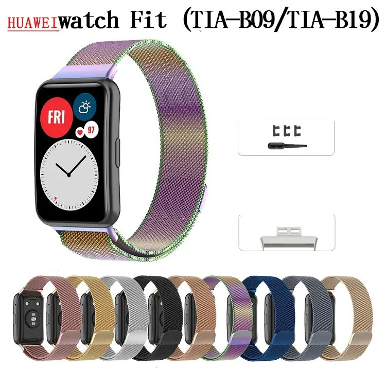 Ремешок магнитный для Huawei Watch Fit, металлический сменный Браслет из нержавеющей стали для наручных часов Huawei Fit, TIA B09