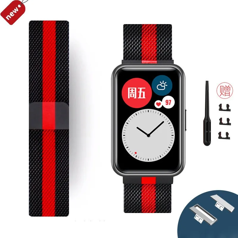 Ремешок для часов Huawei, магнитный ремешок для часов Huawei, металлический ремешок для часов TIA B09, сменный Браслет из нержавеющей сталиФлуоресцентныйГранулы из нержавеющей стали 304 поставляются с пластиковым инструментальным ножом и 3 кнопкамиПодходящая модель: часы Huawei Fit (TIA-B09/TIA-B19)Вес: 27 граммов Миланского ремешкаПодходит для окружности запястья: 5,5-8,7 дюйм (ов)Аксессуары; Нож для пластиковых инструментов + 3 Оригинальные пряжкиПреимущества: 1 нержавеющая сталь 316 материал металлическая пряжка более текстурированная,2 нож для распределительного инструмента облегчает пользователям без гвоздей замену ремешка для часов, а нож для пластикового инструмента не повреждает машину и лучше защищает часы3. Распределите 3 Оригинальные пряжки и больше не беспокойтесь о проблеме сломанных пряжекМатериал: нержавеющая сталь 316 материал металлЦвет: серебристый, черный, темно-синий, Космический серый, золотой, розовое золото, розовый, шампань, цветнойПроцесс: верхний слой из воловьей кожи выбран для поверхности этого продукта, а поверхность обработана простым плетением. Нижняя кожа изготовлена из ультраволоконного материала, который является водонепроницаемым, влагозащищенным, удобным и мягким. Ремешок отличается толстым дизайном, который удобен в носке, прост в использовании и отличается высоким качеством. Материал безвреден для кожи человека, экологически чистый, безопасный и не аллергенный.Адаптируются к оригинальным часам Huawei, подходящим для умных часовРазмер изделия: средний размер (унисекс)