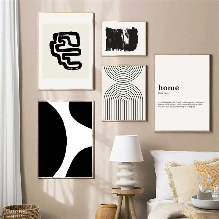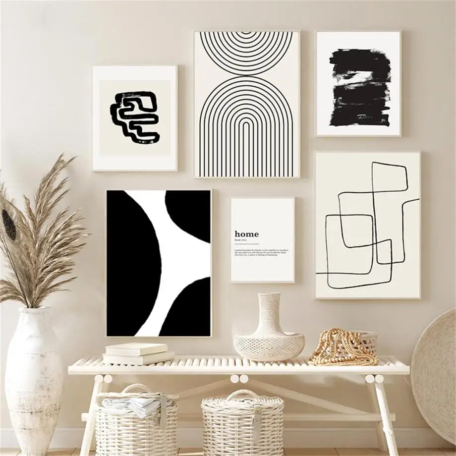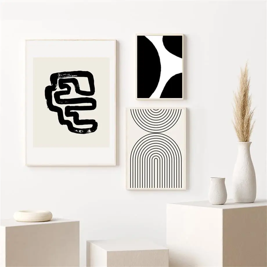 Черно-белая Минималистичная Геометрическая линия абстрактная настен...