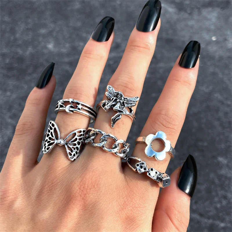 Кольцо женское в готическом стиле, серебристого цвета, 6 шт., 2021 г.