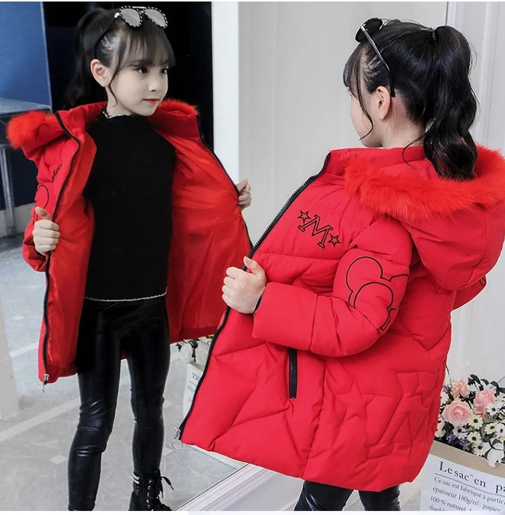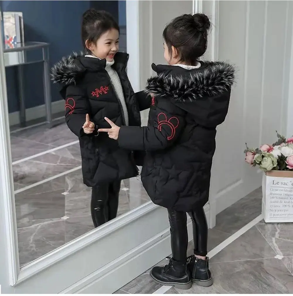 Детский пуховик для девочек, зимняя теплая ветрозащитная куртка, па...