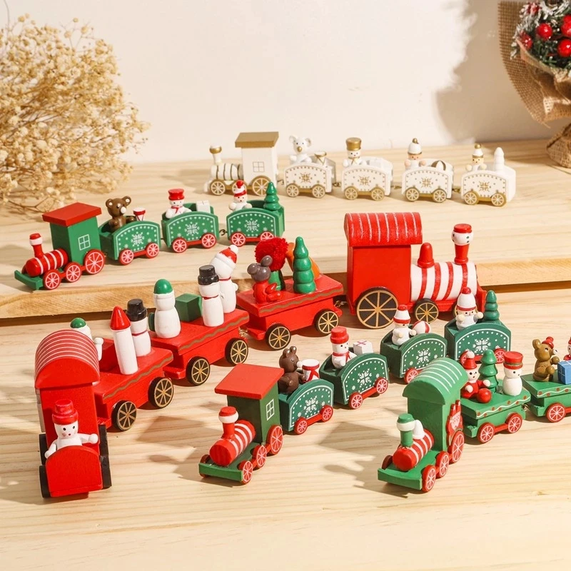 Рождественский деревянный набор поездов, Рождественское украшение, ...
