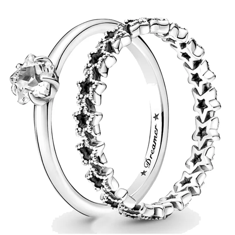 Новое женское серебряное кольцо ослепительные звезды мечтатель с кристаллом Кольцо женское Подарочное кольцо DIY Ювелирные изделия Pandora