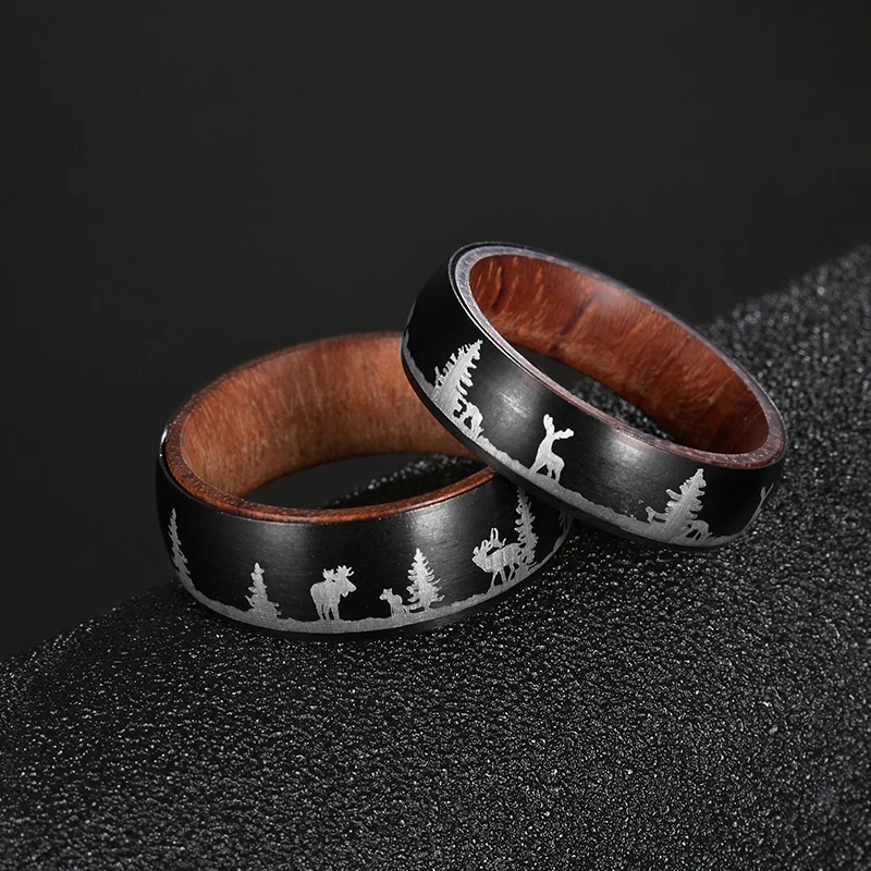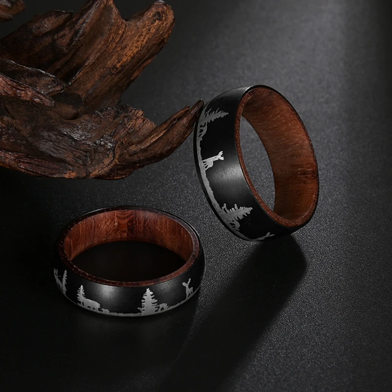 Кольца из нержавеющей стали с инкрустацией в виде оленя, 8 мм