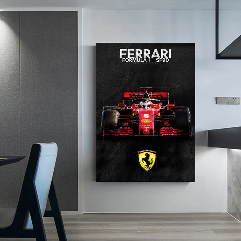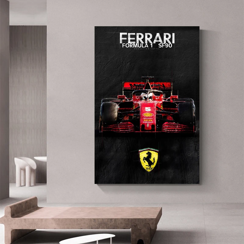 Классическая Картина на холсте с изображением гоночной машины F1 Ferraris, винтажные плакаты, принты, Настенная картина для декора гостиной, детской комнаты, Декор