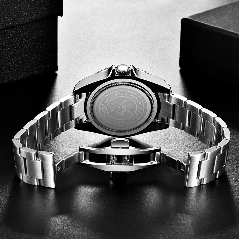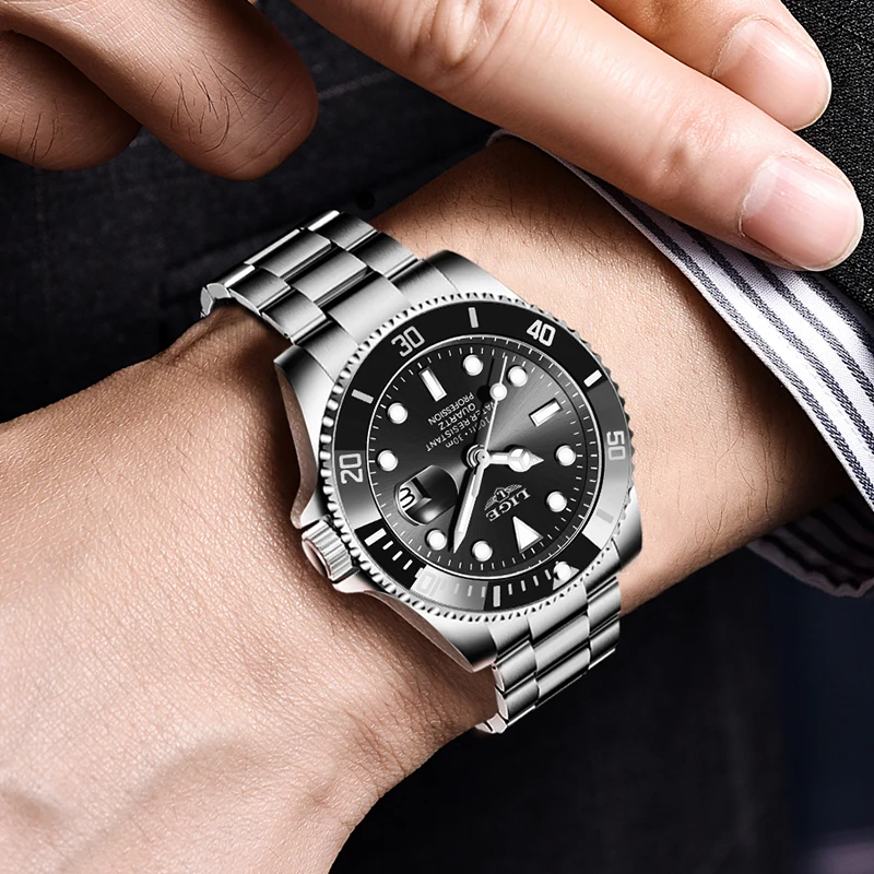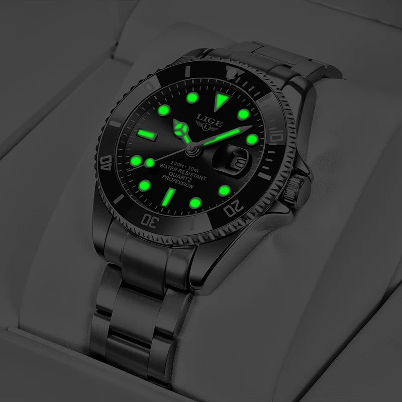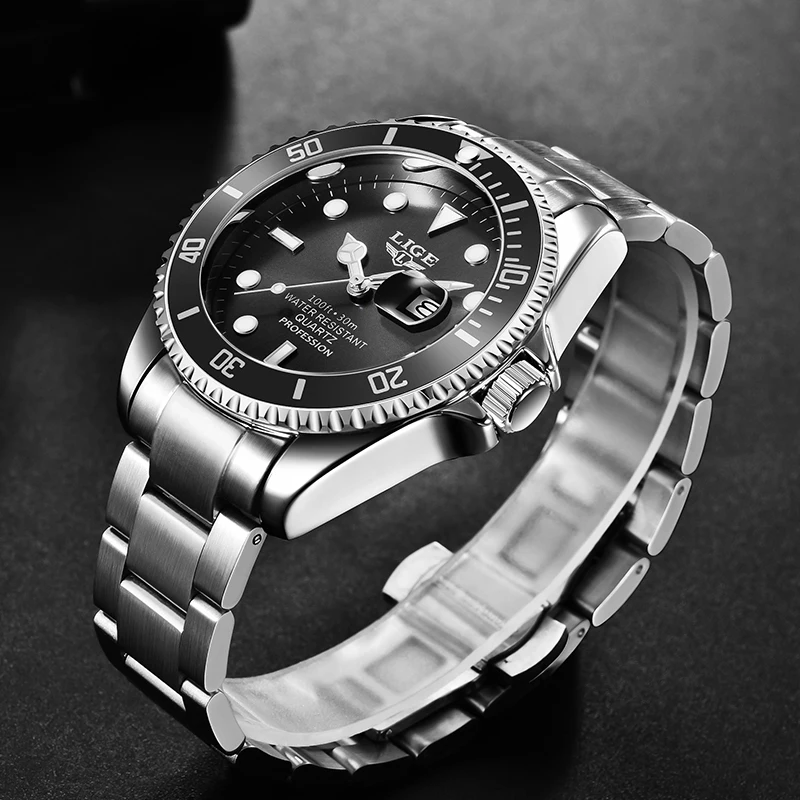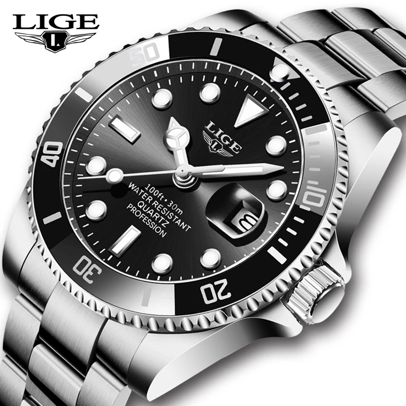 Часы наручные LIGE Мужские кварцевые, брендовые Роскошные спортивные модные, водонепроницаемость 30 АТМ, с датой, 2022