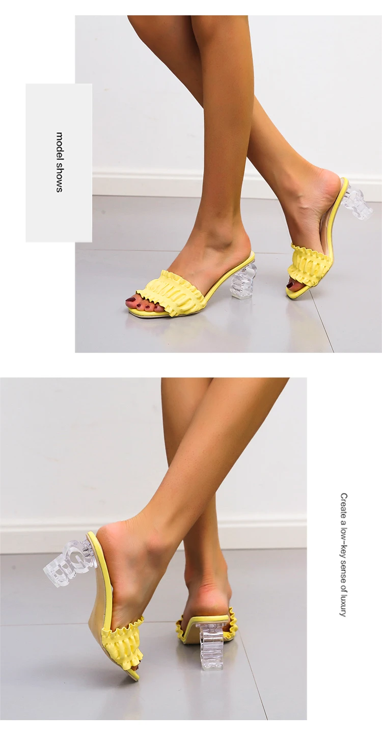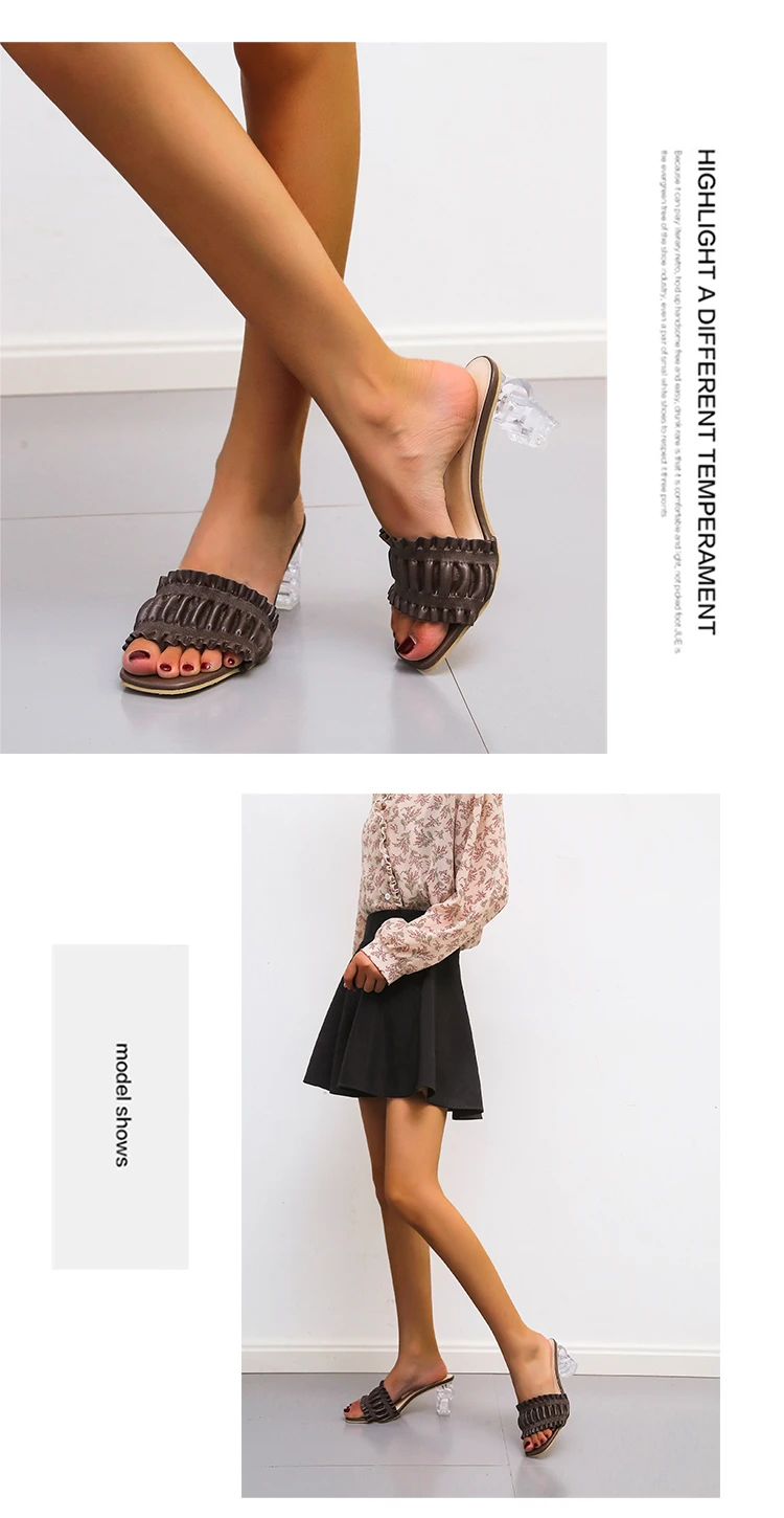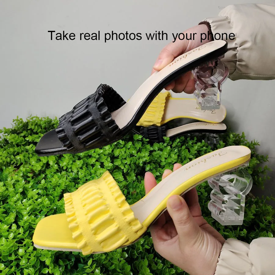 Женские шлепанцы на высоком каблуке, прозрачные шлепанцы с открытым носком, слипоны на каблуке, обувь на каблуке, 2019