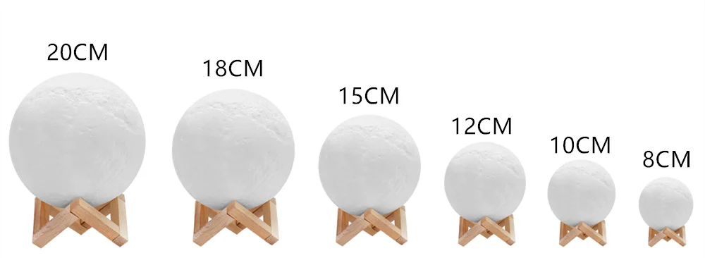 Название продукта: лампа с 3D принтом ЛуныМатериал: PLAПроцесс производства: 3D печатьСветильник источник света: светодиодныйЦвет: A-2 цвета s touch, белый светильник/Теплый светильник.B -- 3 цвета сенсорного и Pat управления, белый светильник/желтый светильник/Теплый светильник.C -- 16 цветов с пультом дистанционного управления.Яркость: плавная регулировкаЕмкость батареи: 1x400mAh li-po аккумулятор (встроенный)Время зарядки: 2-5 часовВремя работы: 8-10 часов (зависит от яркости)Источник питания: USB DC 5V 1AДиаметр: 8 см 10 см 12 см 15 см 18 см 20 см.