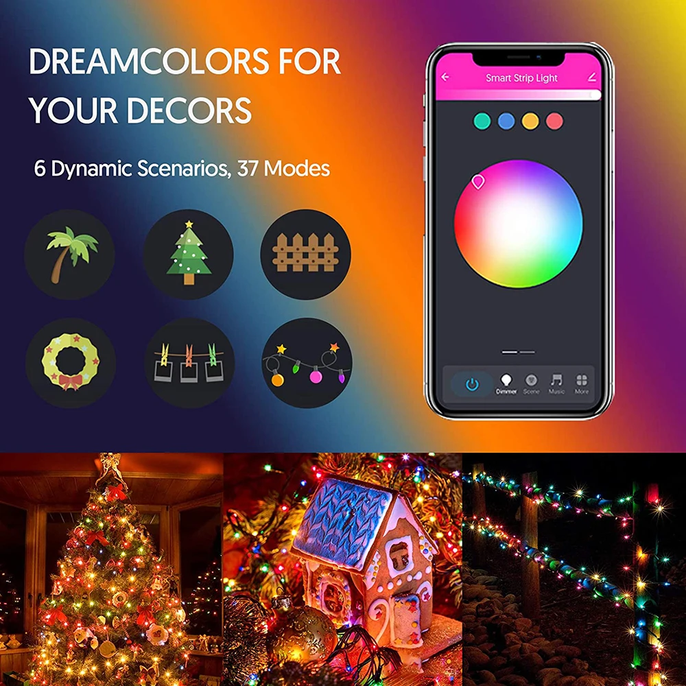 Смарт наружные струнные светильники 50 LED наружные WIFI Bluetooth Dream цветные сказочные огни с пультом дистанционного управления с Alexa Google дома изменение цвета диммер музыка синхронизация Рождество патио спальни Вечерние
