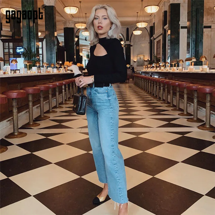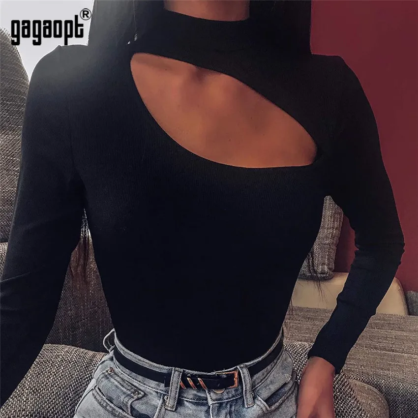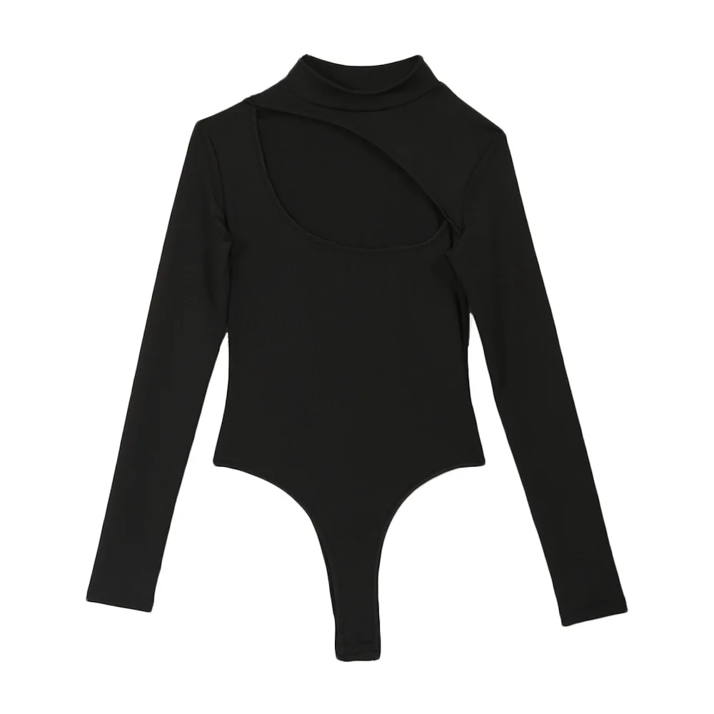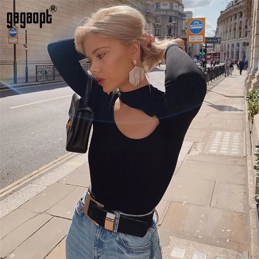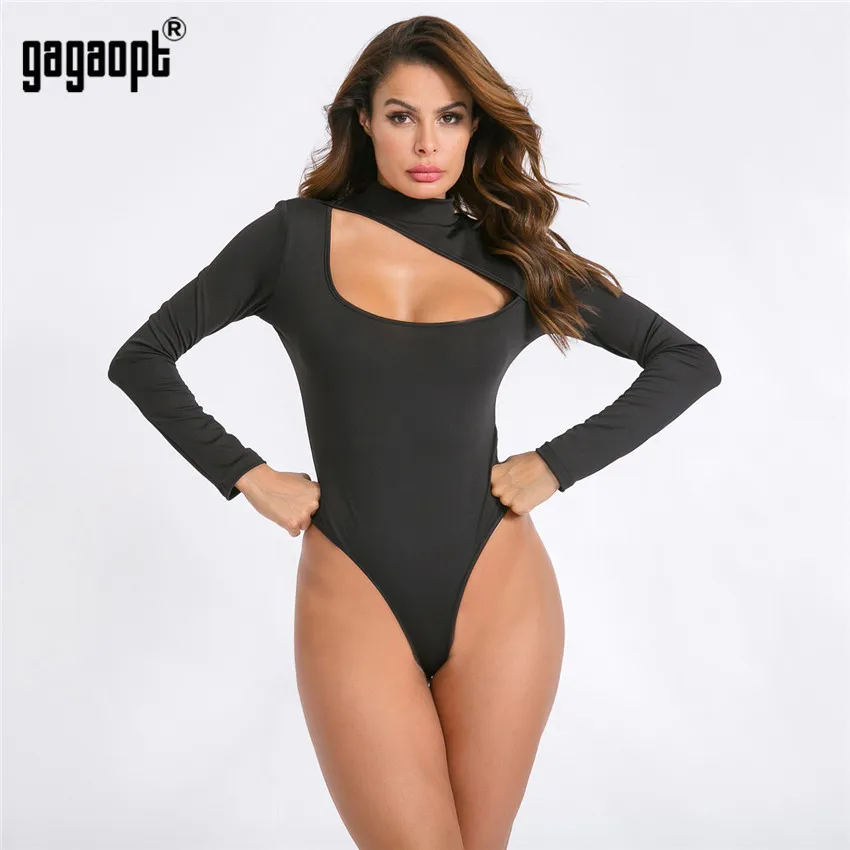 Gagaopt сексуальные боди с открытой передней частью, женские черные осенние облегающие комбинезоны с длинным рукавом, женский комбинезон, базовый комбинезон, женские топы