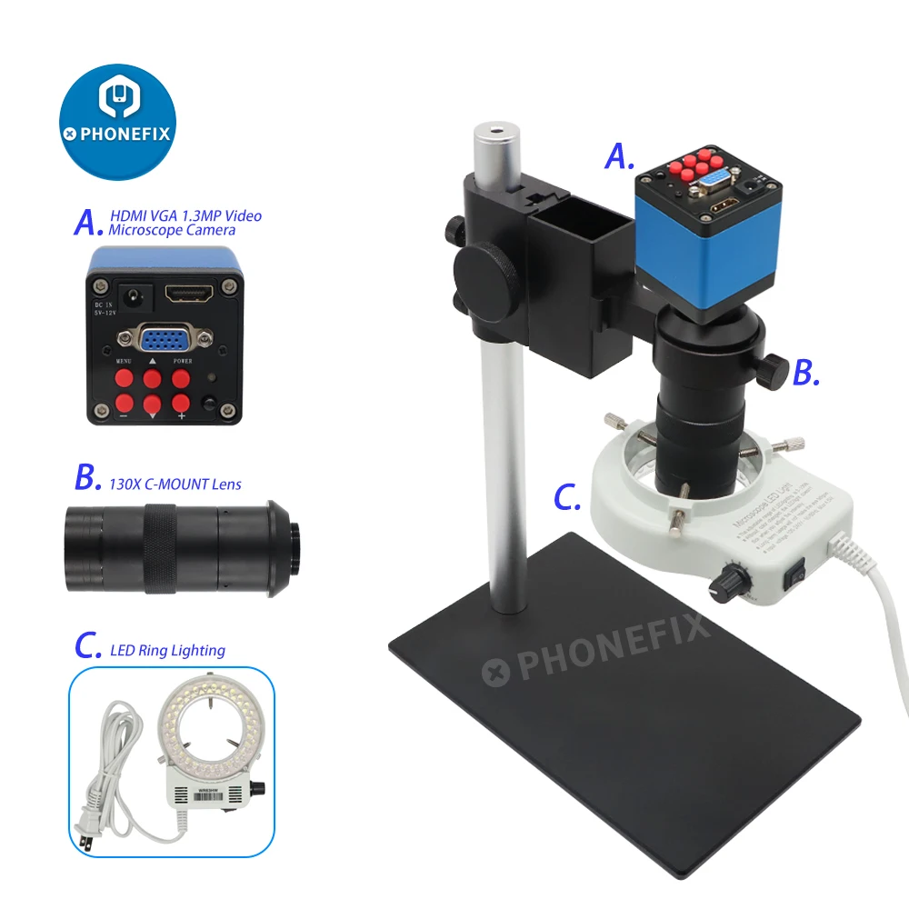 1080P HDMI микроскоп набор камеры для лаборатории печатной платы телефон Пайка Ремонт HD 13MP микроскоп камера 130X C крепление объектива 56 светильник