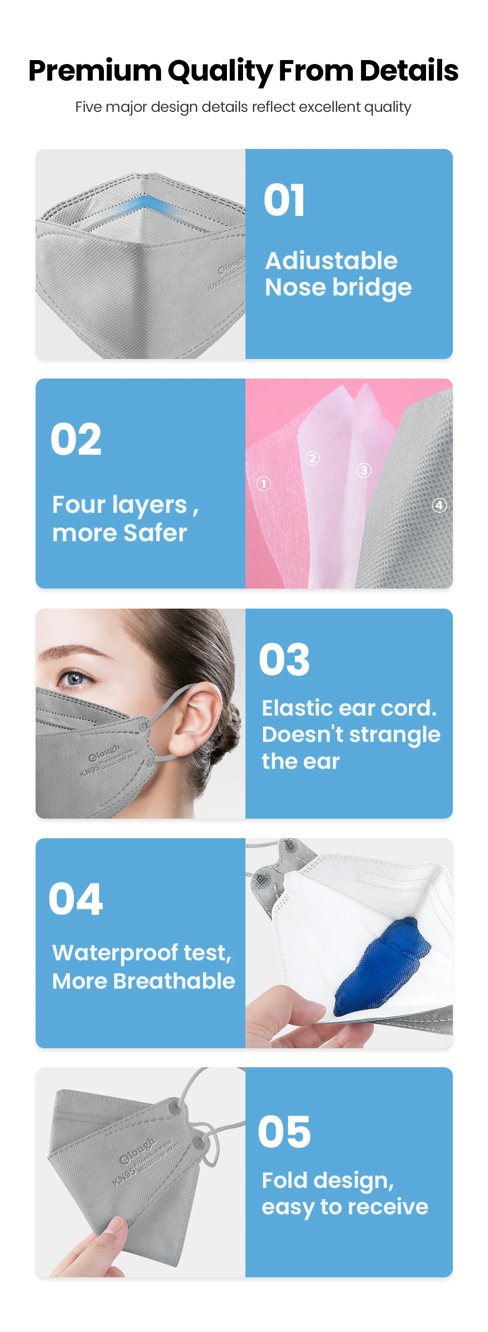 Маска Elough KN95 FFP2 для взрослых, 4 слоя