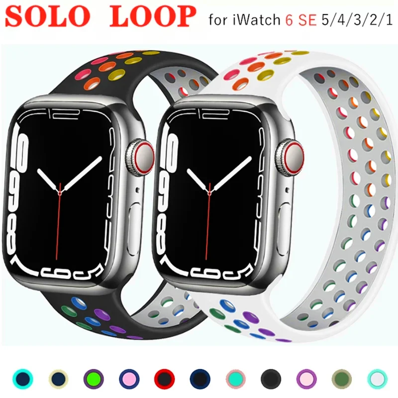Solo Loop ремешок для Apple Watch Band 45 мм 41 мм 44 мм 40 мм 38 мм 42 мм Силиконовый эластичный пояс браслет iWatch Series 7 6 se 5 4