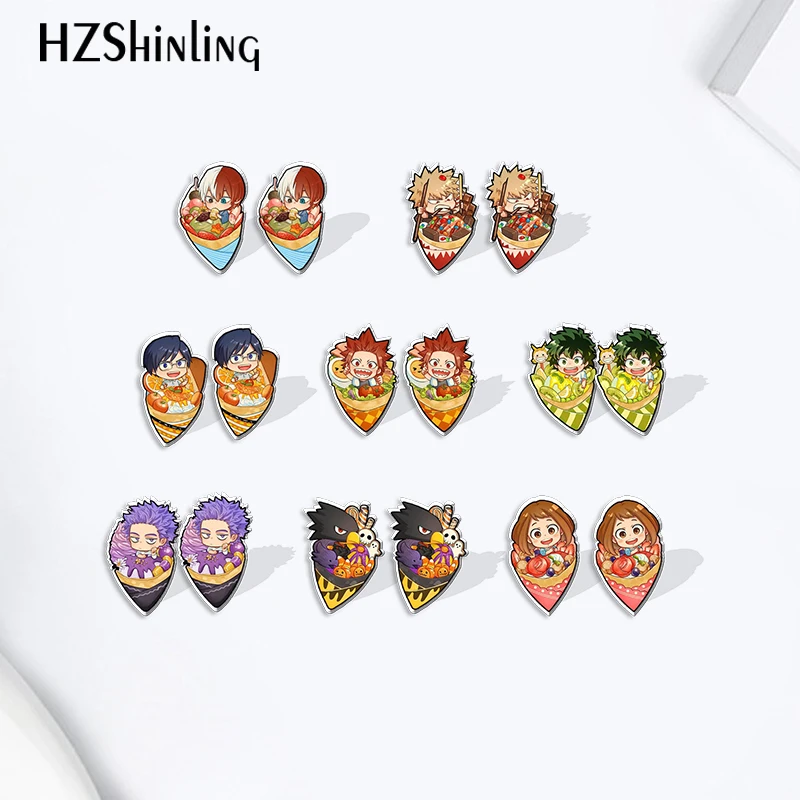 Серьги-гвоздики из акриловой эпоксидной смолы, с мультяшным аниме-р...