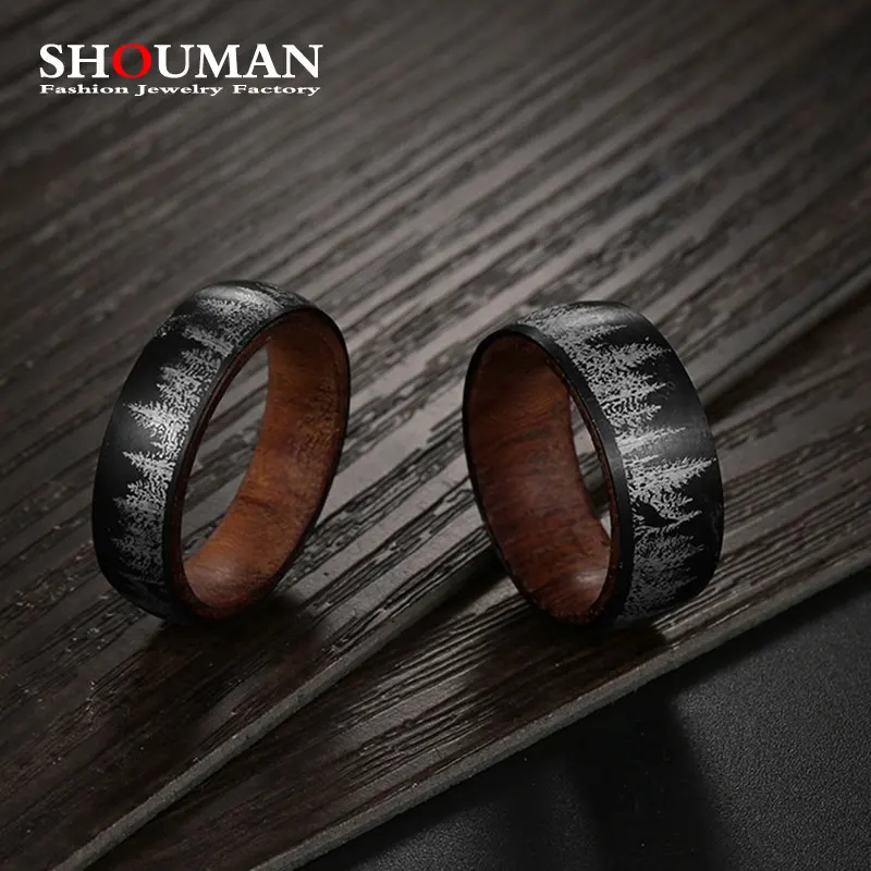 Новинка 2021, модное высококачественное мужское обручальное кольцо SHOUMAN из твердой древесины и титана, ювелирные изделия, Рождественский подарок в виде лося, джунглей