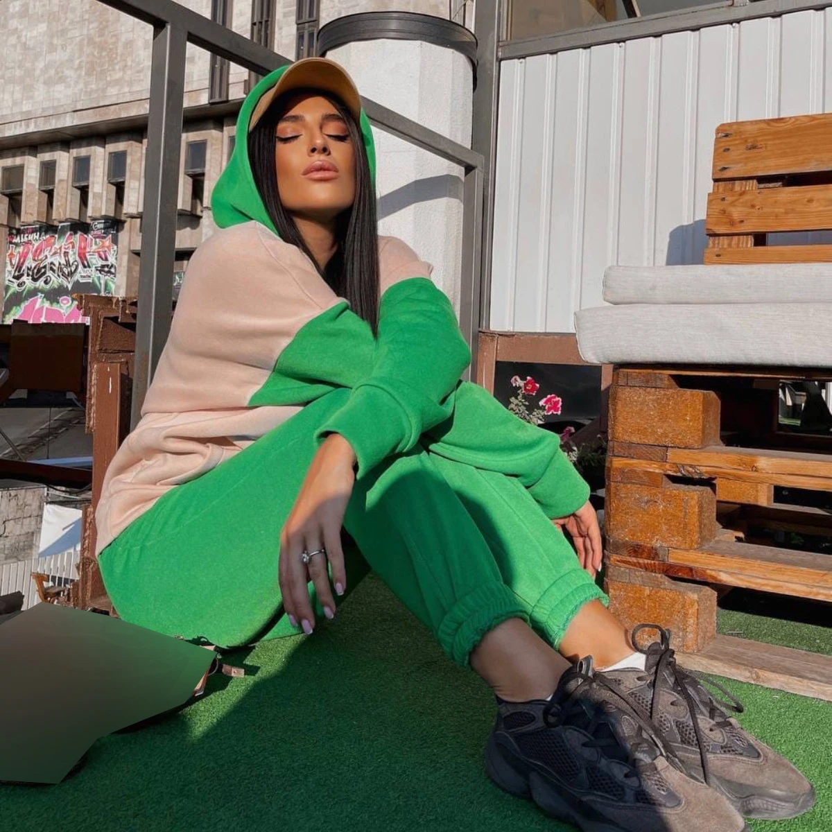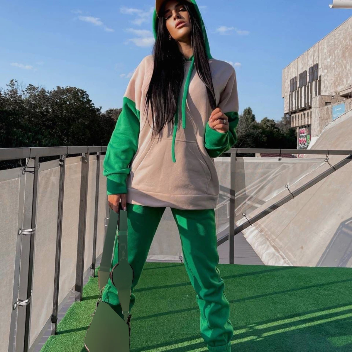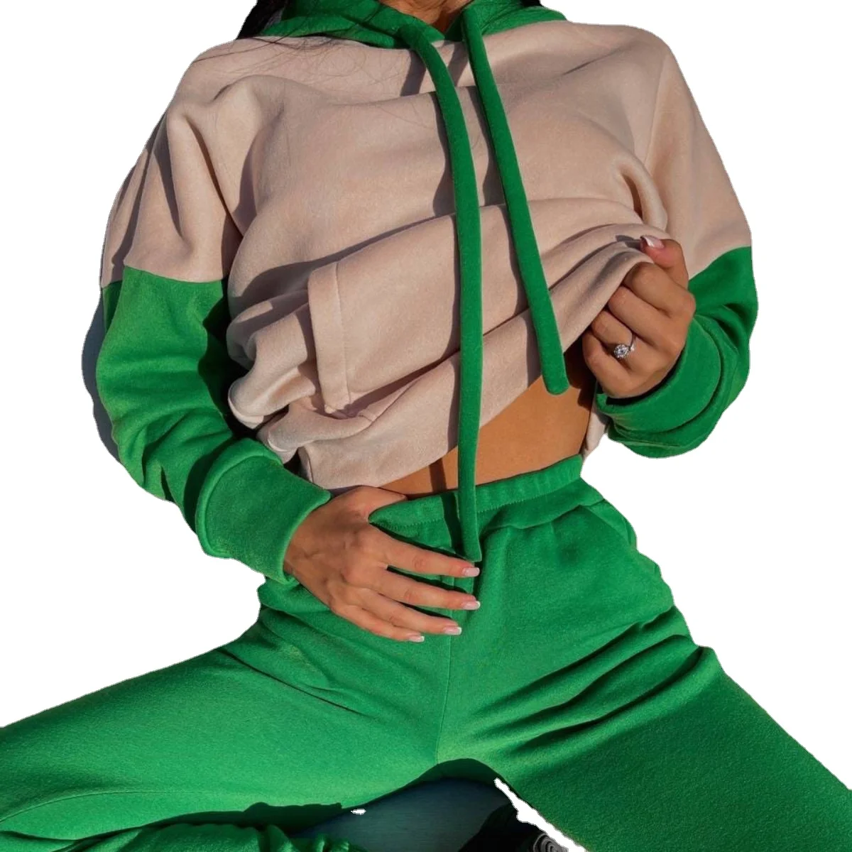 Повседневный Женский винтажный костюм из двух предметов с капюшоном...
