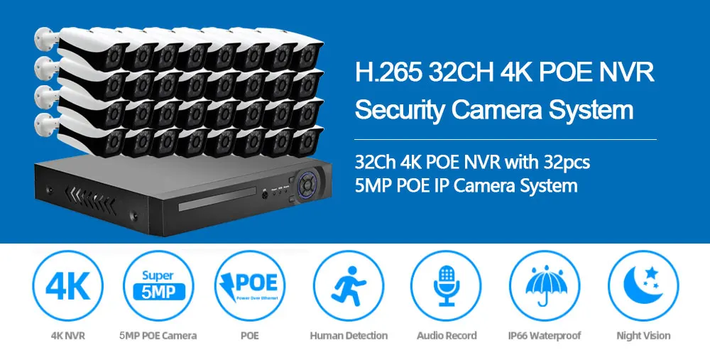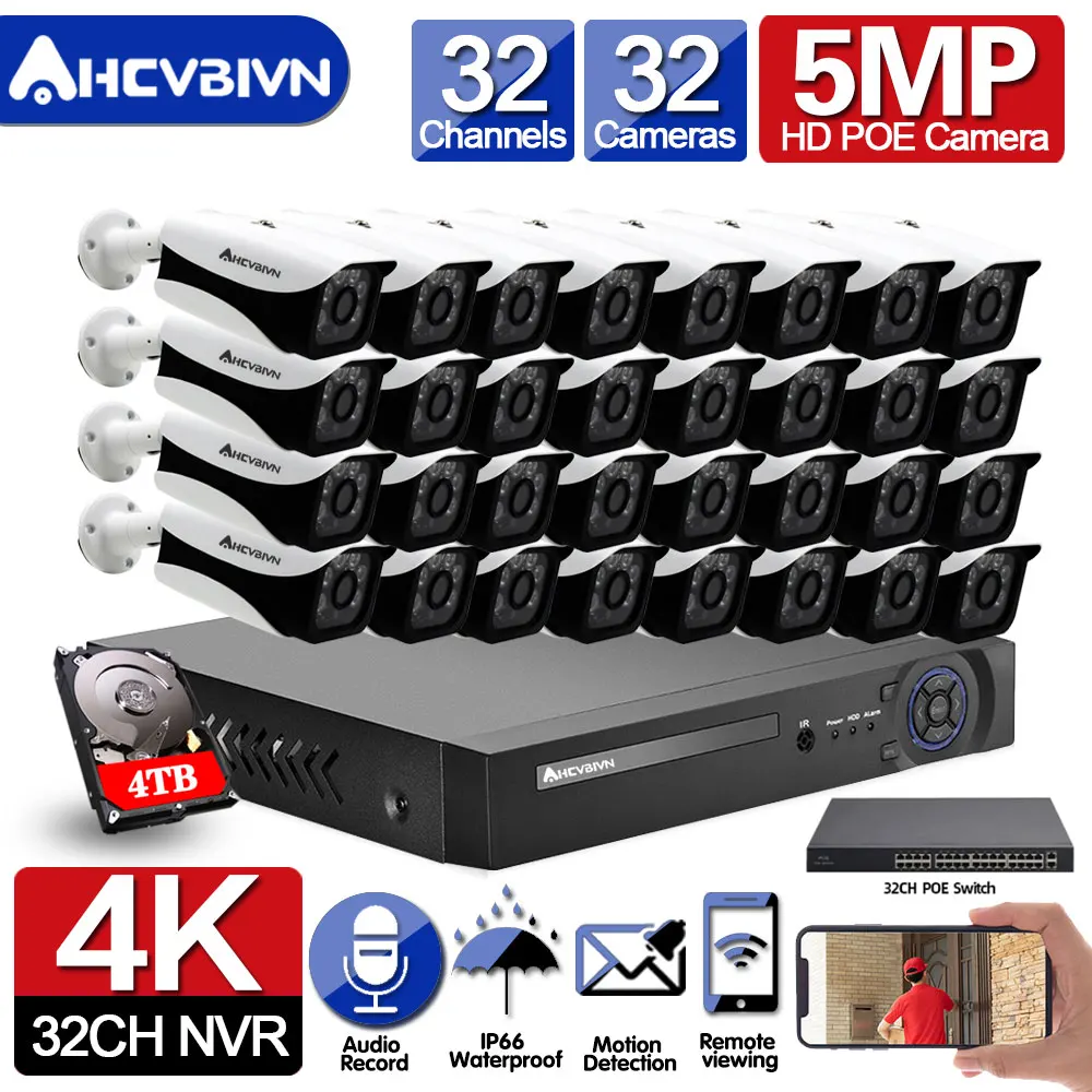 H.265 + 32CH 5MP Cctv NVR система 5MP Низкая освещенность безопасности аудио камера набор IP66 Водонепроницаемая камера видеонаблюдения комплект