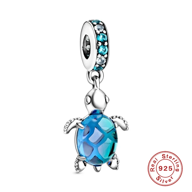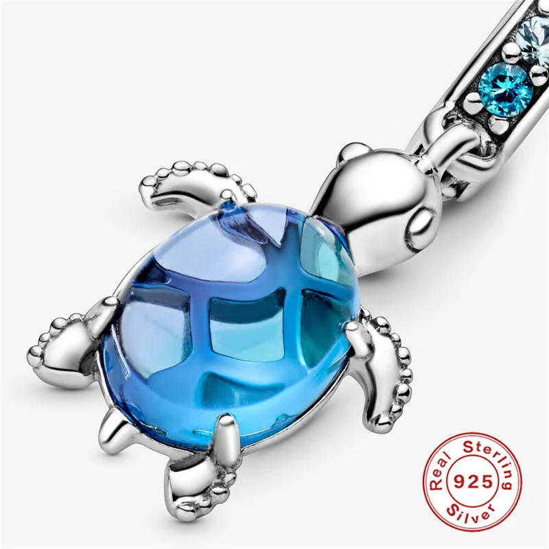 Милый синий банный халат с принтом подвеска-черепаха, очаровательный, подрходит к брошь браслеты для женщин, сделай сам, подарки на день рождения 925 стерлингового серебра ювелирные браслеты