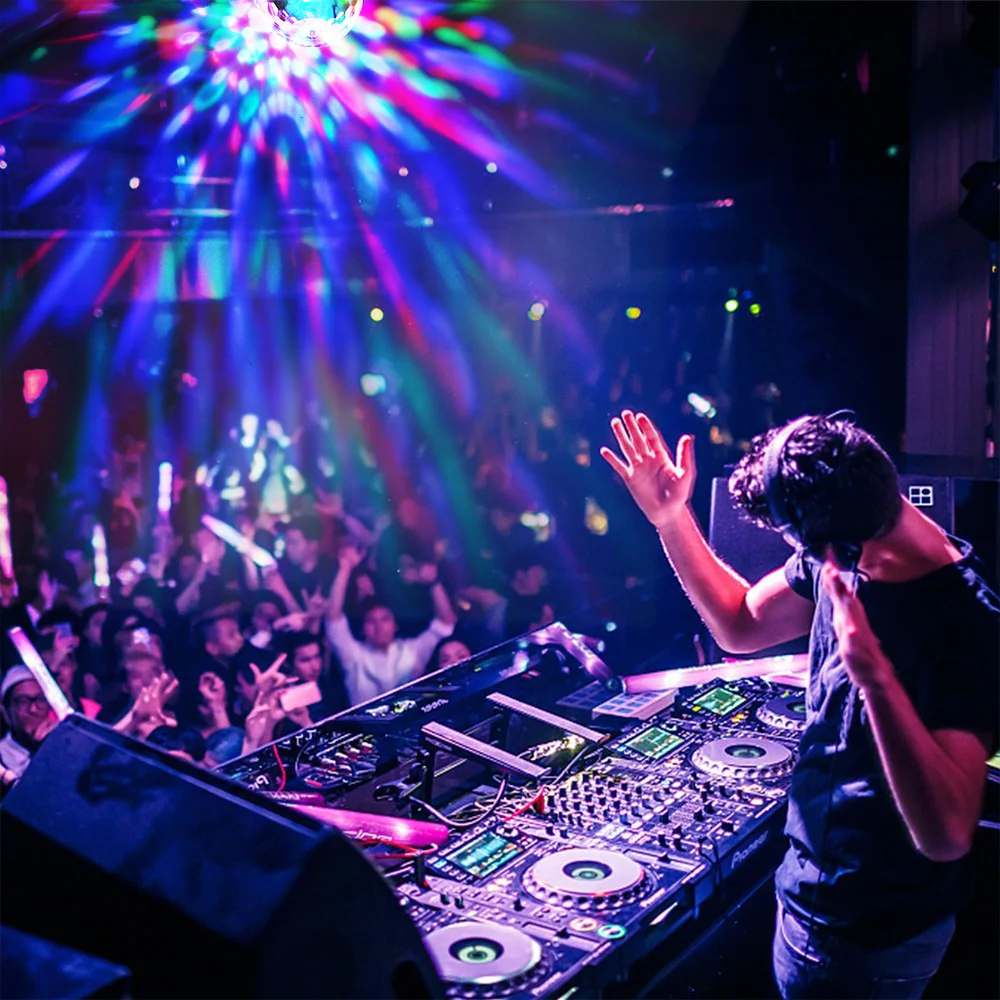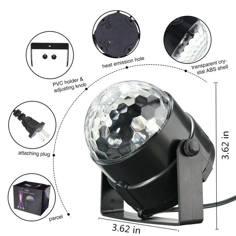 RGB диско-шар, освещение для вечерние, вращающийся шар со звуковой активацией, Освещение DJ, светодиодный проектор, Стробоскопическая Лампа вечерние ринки, клуба, бара, Рождества, сценическое освещение