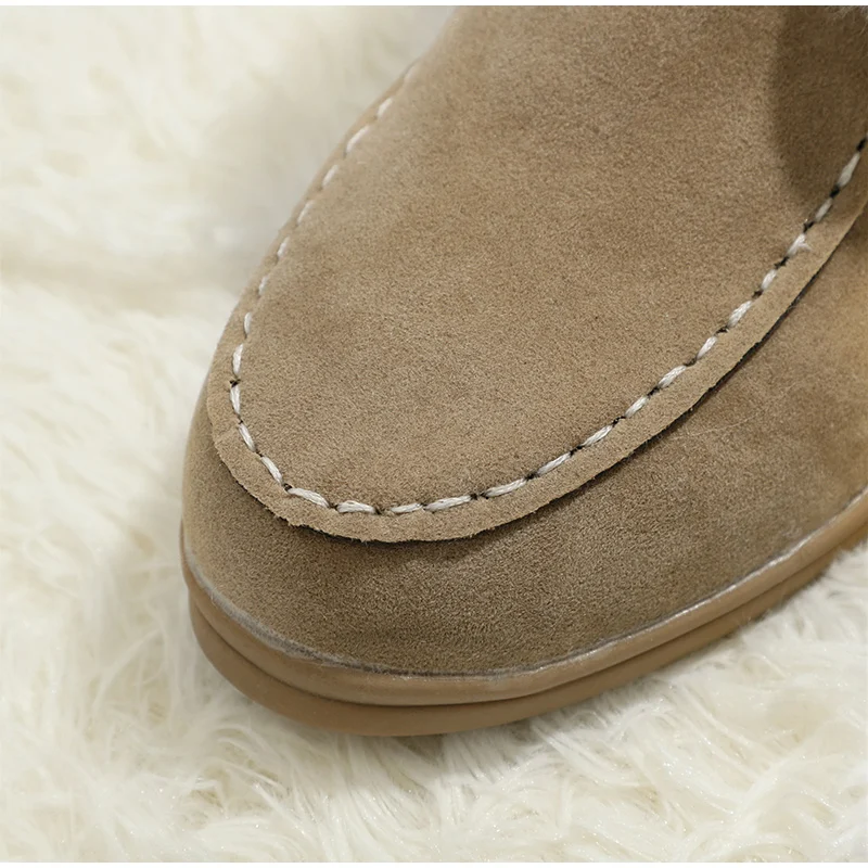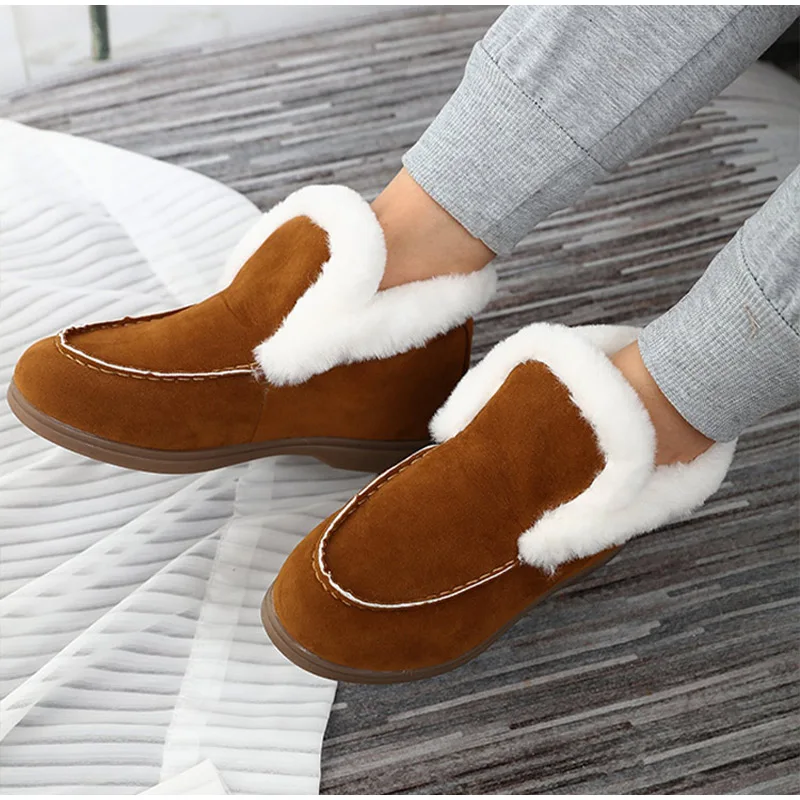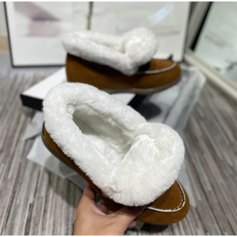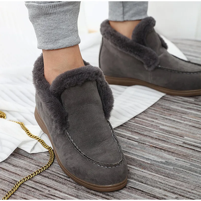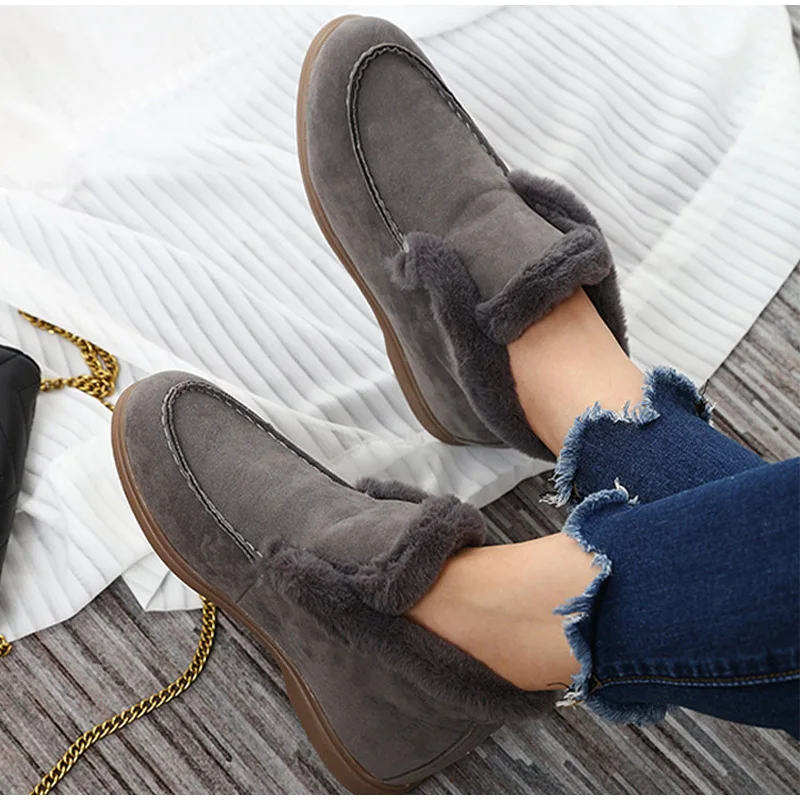 Зимние женские замшевые ботинки, теплые Плюшевые Пушистые женские ботильоны на плоской подошве, мягкие удобные женские короткие ботинки без застежки, новинка 2021