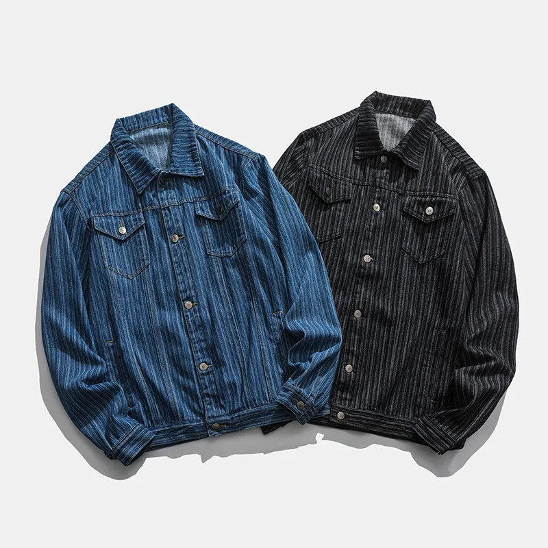 Куртка мужская джинсовая в Вертикальную Полоску, свободная уличная куртка, дизайнерский брендовый черный пиджак из денима, большие размеры, весна-осень