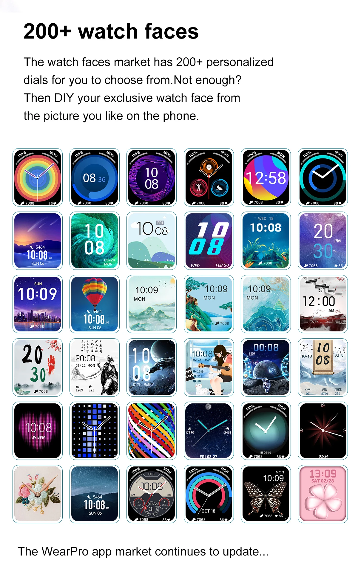 Часы faces market имеют 200 + персонализированных циферблатов для вас на выбор. Недостаточно? Затем Сделай Сам свой эксклюзивный циферблат часов с картинки, которая вам нравится на телефоне.