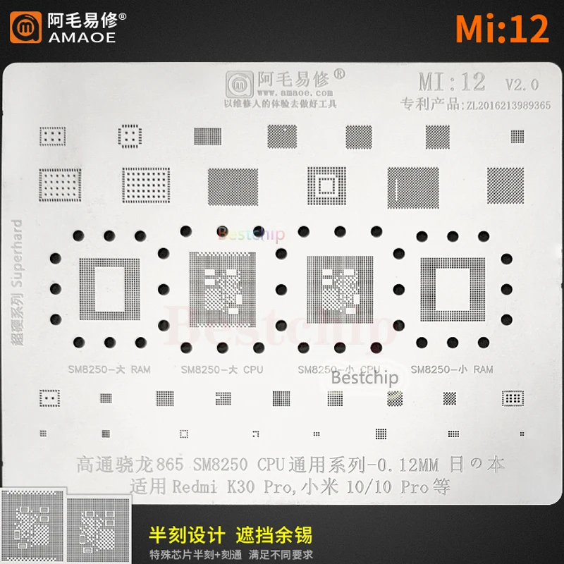 Трафарет Amao для iPad Pro A1673 A1674 A1675 BGA CPU RAM Wifi Nand ...