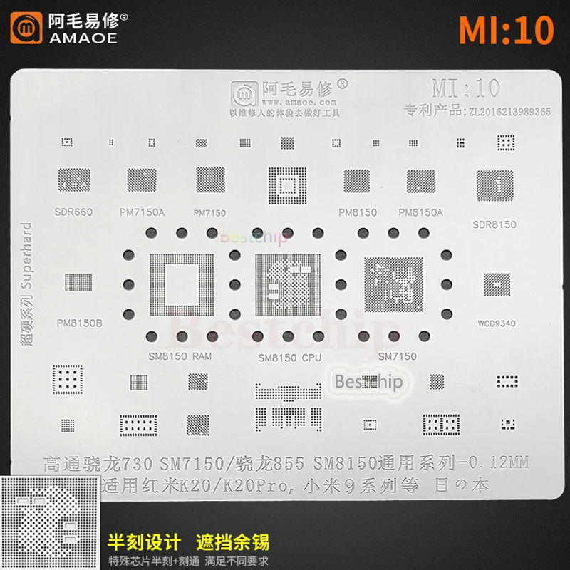 Трафарет для реболлинга BGA для Xiaomi Redmi 9 Note9 IC PM6350 PM4250 SM7225 MT6769V MT6358vwPM7250BWCN39917704078190