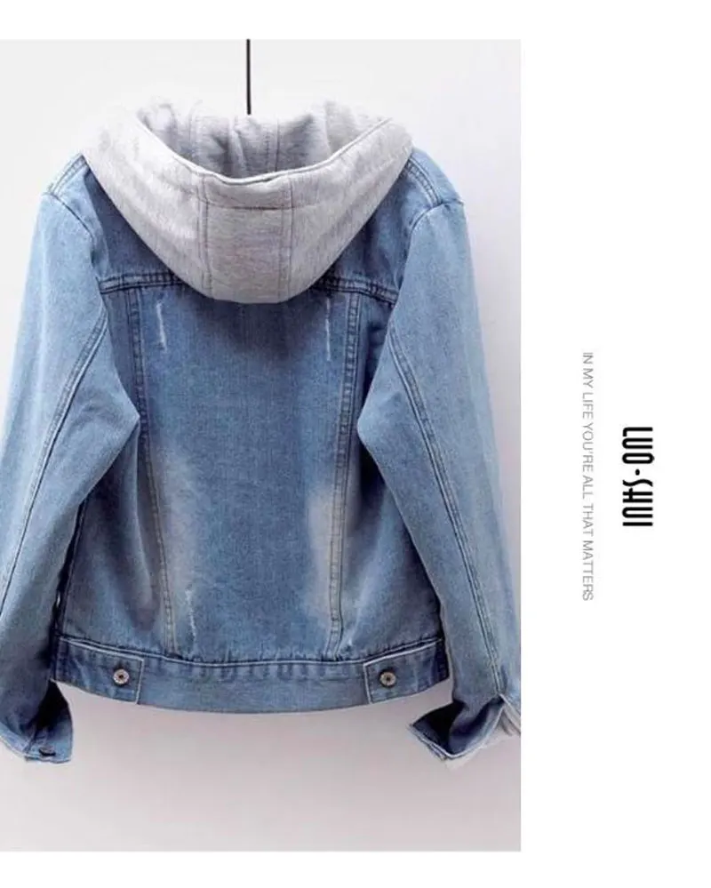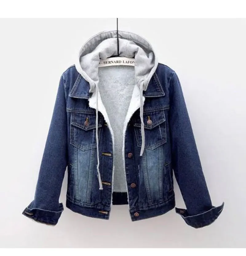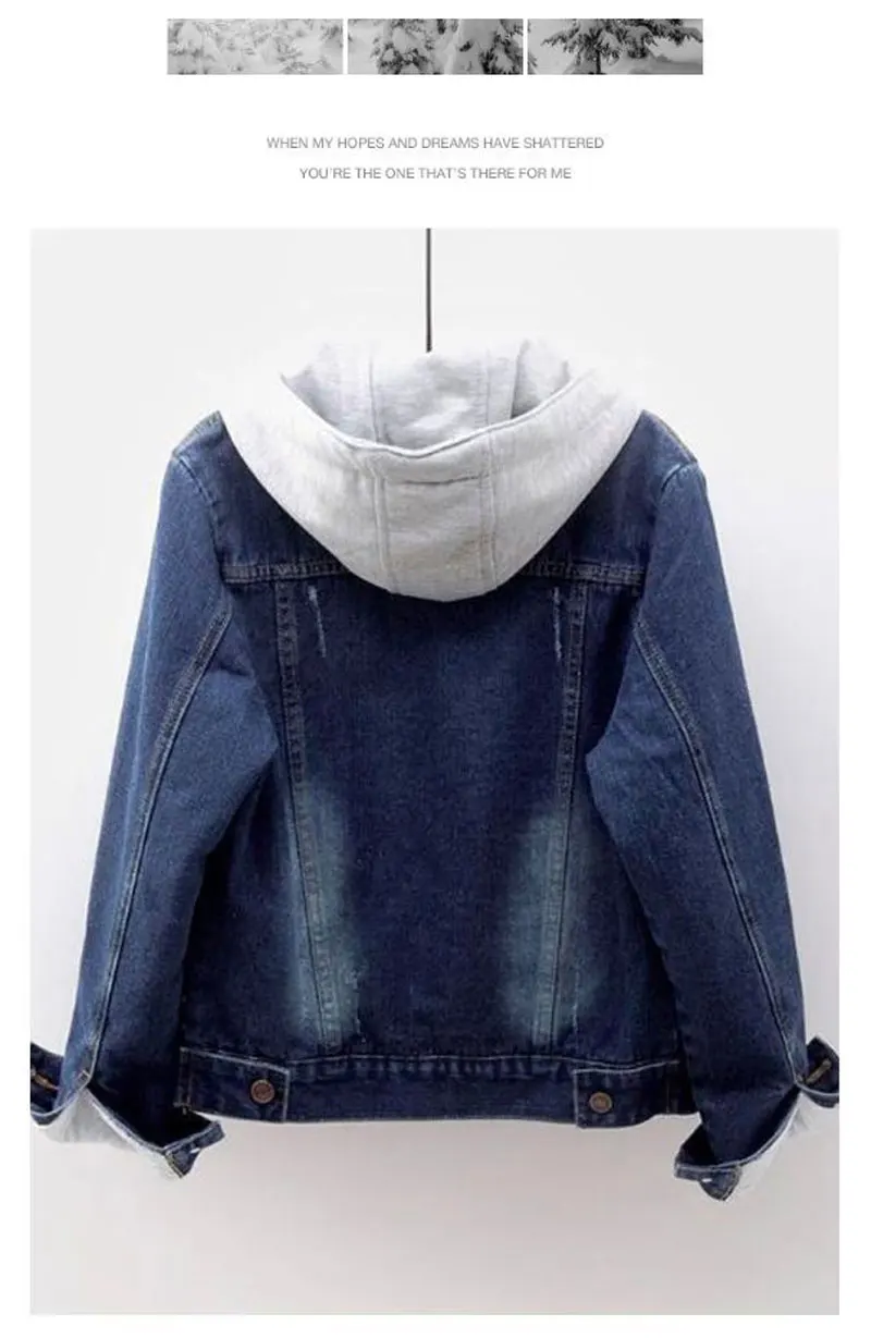 Женская джинсовая куртка с капюшоном, осенне-зимняя короткая винтаж...