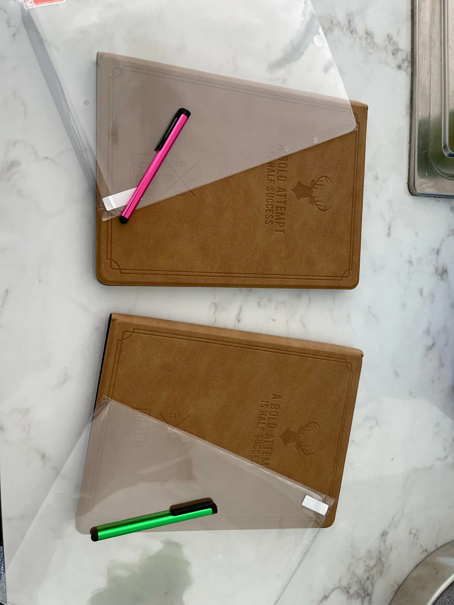 Очень красивый, качественный и аккуратный чехол! (на фото видна небольшая вмятина внутри, но проведя пальцем в этом месте никаких углублений не чувствуется) В подарок приложили стилус и защитную плёнку на экран