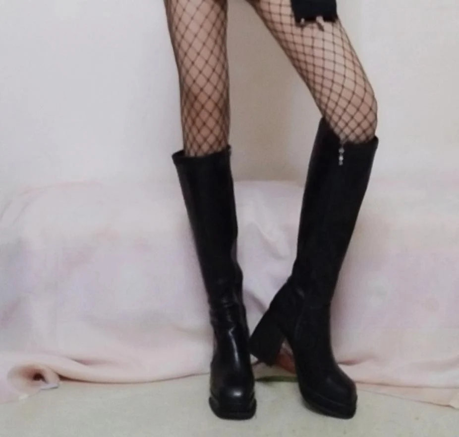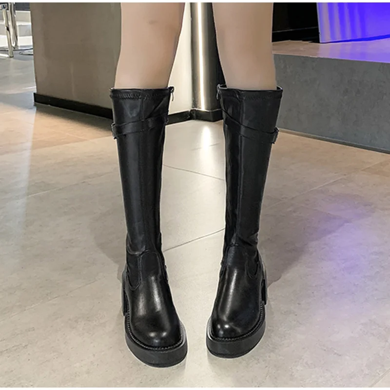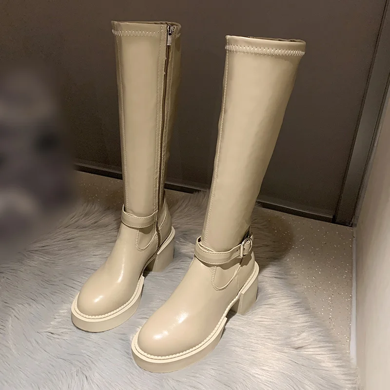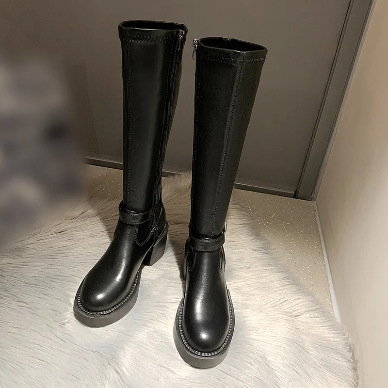 Женские сапоги на молнии, высокие сапоги на толстом каблуке, сапоги до колена на платформе, женская обувь, модная лаконичная женская обувь из искусственной кожи