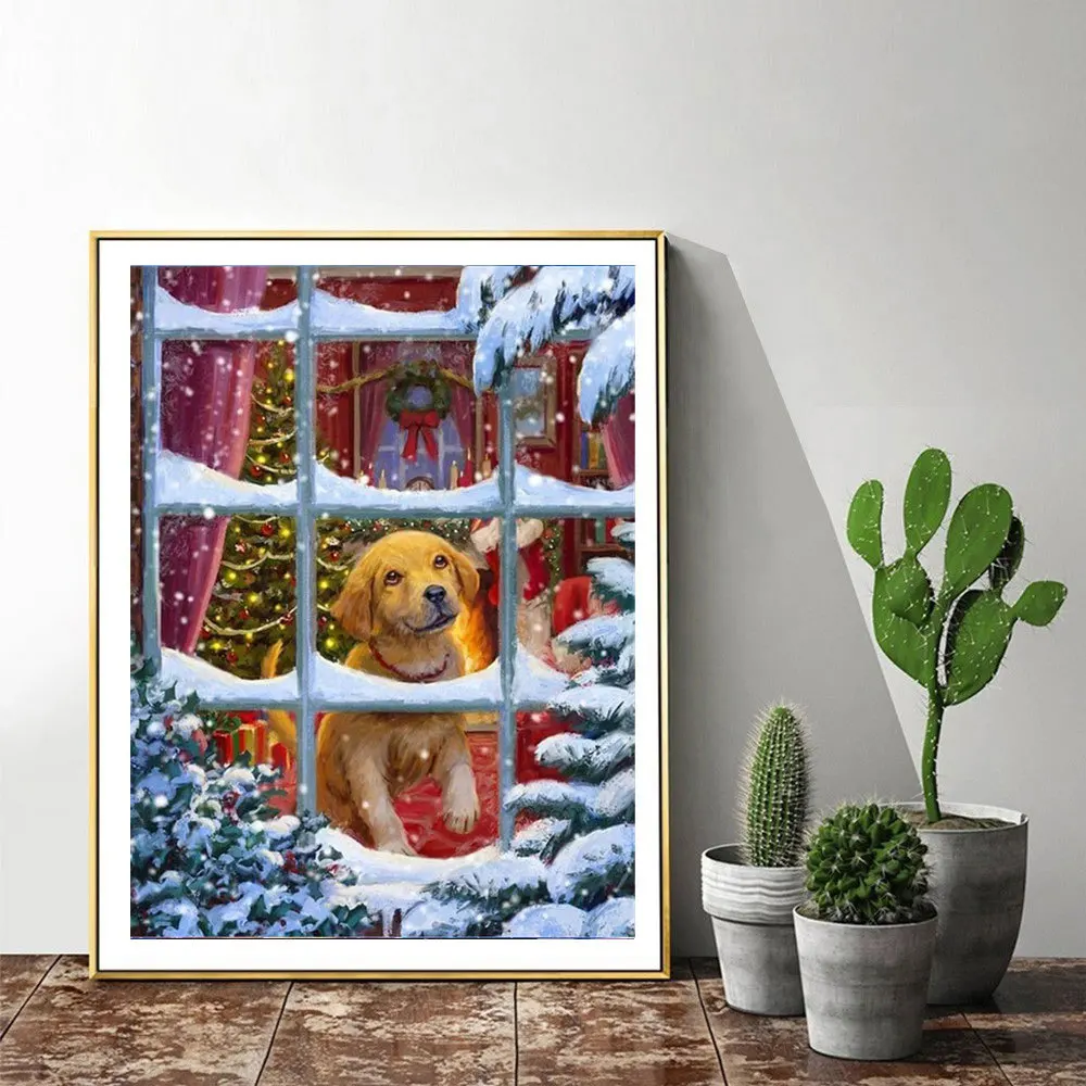 HUACAN 5D алмазная вышивка крестом собака Алмазная картина животное мозаика окно картина Стразы Рождественский подарок