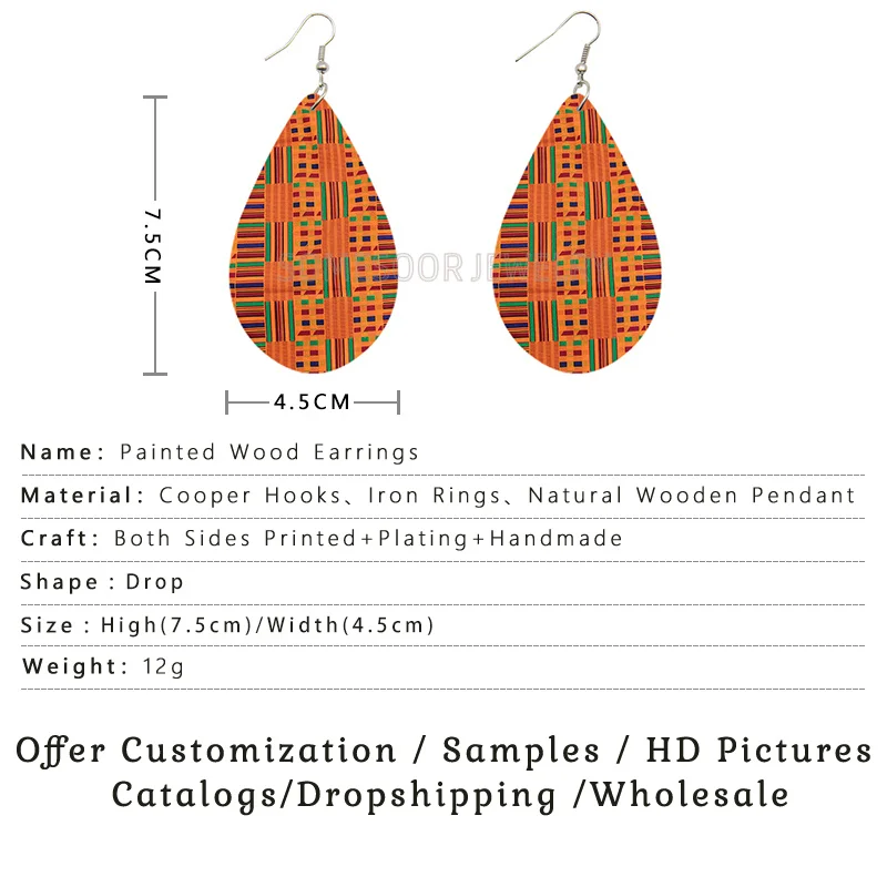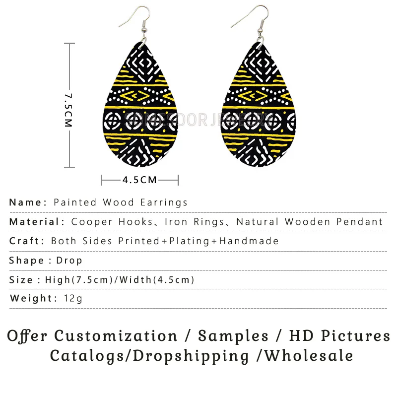 SOMESOOR этнические бесшовные деревянные серьги-капельки с принтом ...