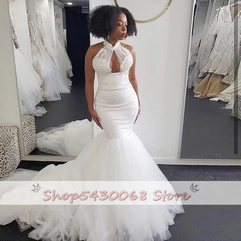 Женское свадебное платье-Русалка It's yiiya, белое кружевное платье с высоким воротом и аппликацией на лето 2019