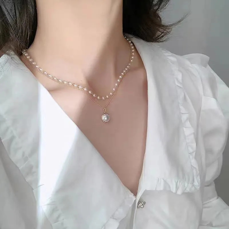 Модное жемчужное ожерелье-чокер для женщин, милая двухслойная цепоч...