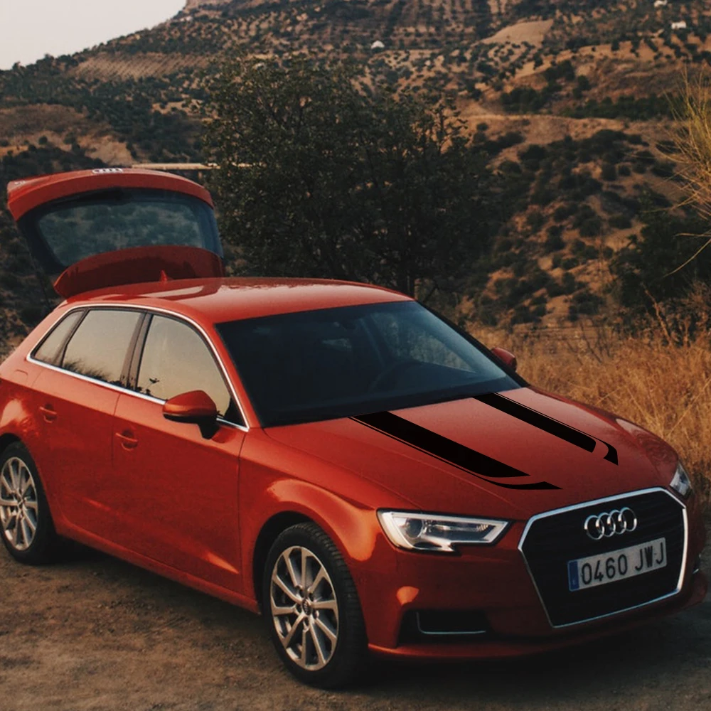 Виниловая наклейка на крышку капота автомобиля с длинными полосками...