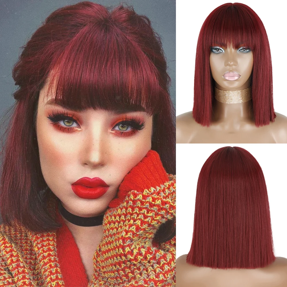 Короткий парик Боб с челкой, синтетические парики для женщин, Омбре...