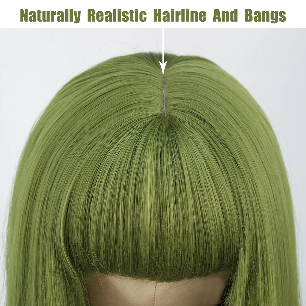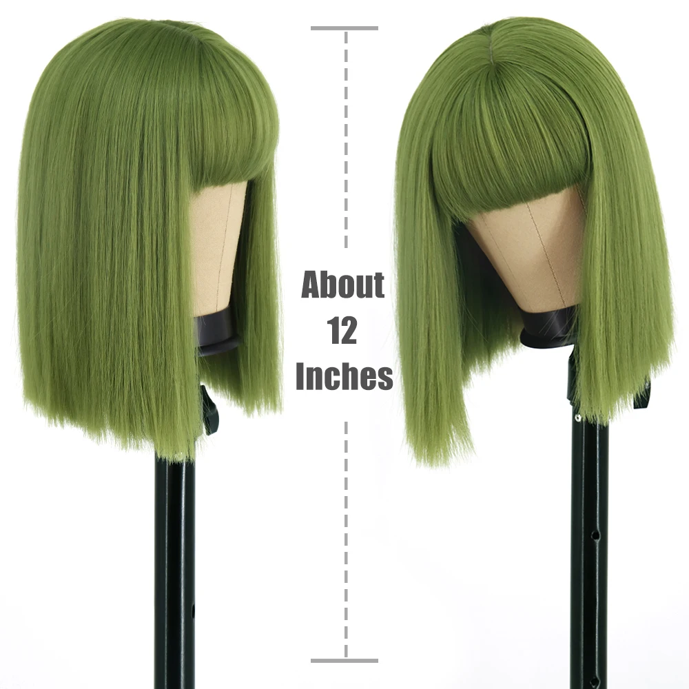 Зеленый короткий парик Боб с челкой для женщин термостойкие синтетические парики Косплей ежедневное использование Лолита прически черный розовый винный красный