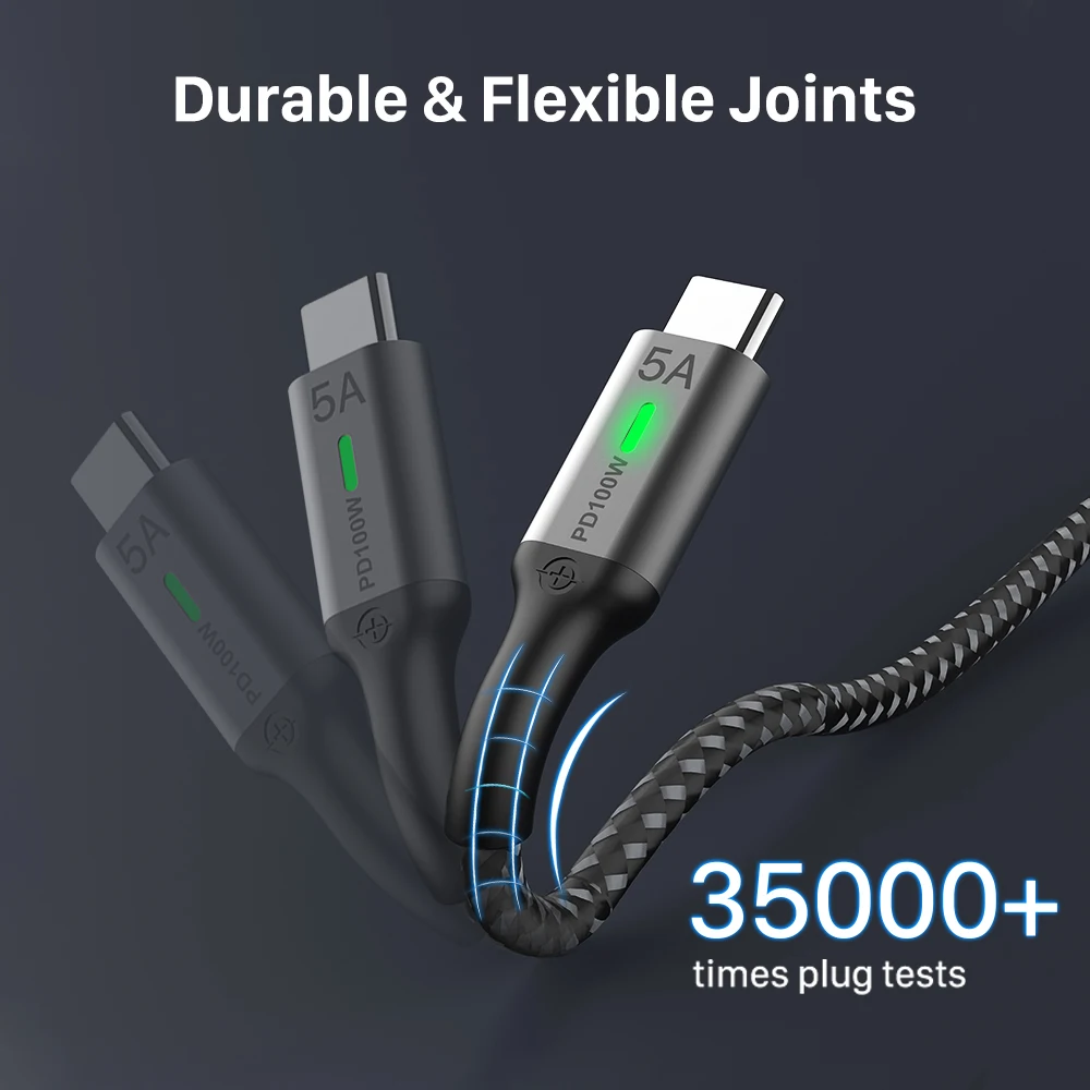 5А E-Mark PD 100 Вт нейлоновый плетеный шнур USB C к USB C кабель