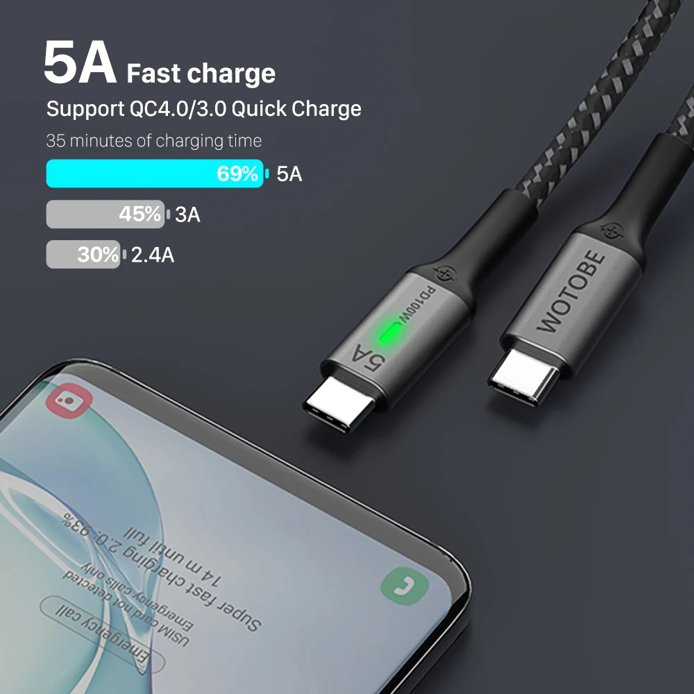 Кабель PD100W с USB C на USB Type C, шнур для быстрой зарядки USB-C 5A E-mark Type-c, кабель для MacBook iPad Samsung Xiaomi Type C, планшетов