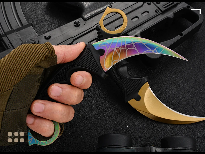Настоящий нож Counter Strike Karambit с фиксированным лезвием, ножа, тигровый зуб, радуга, тактический инструмент для выживания, охотничий нож s