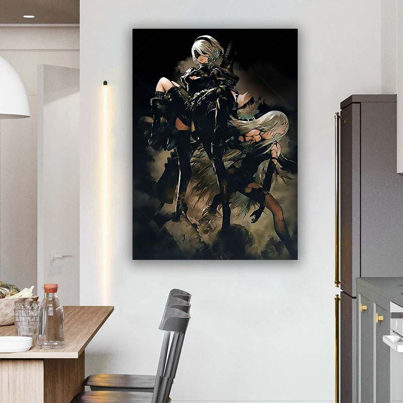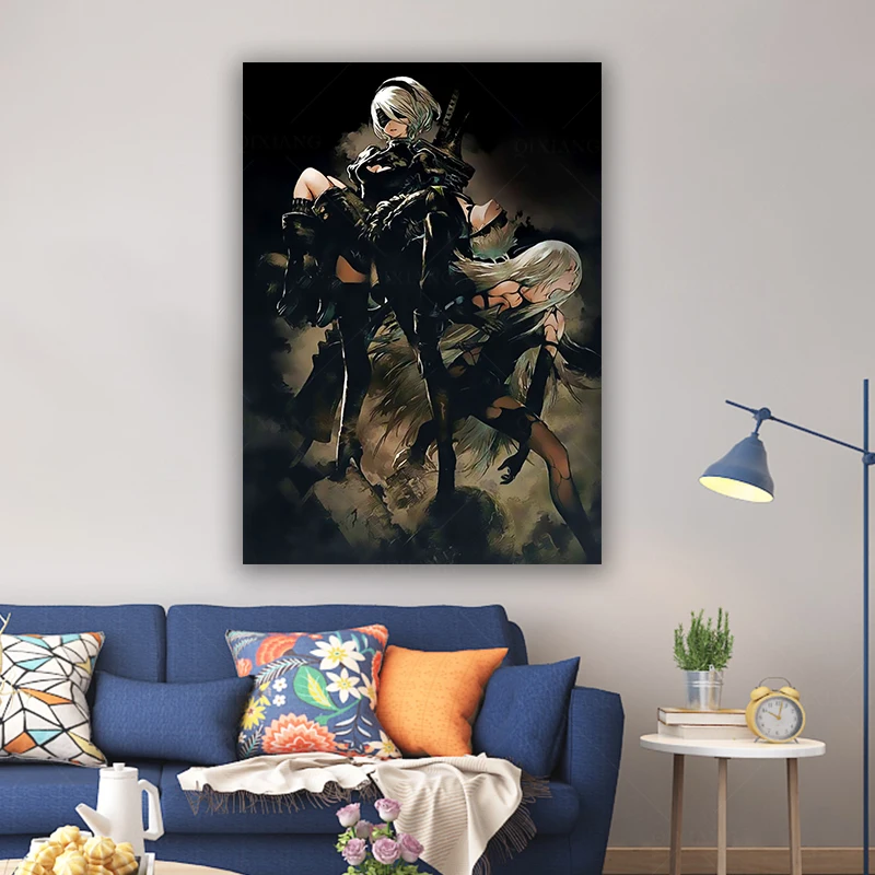 Картина на холсте Nier Automata с изображением девушки из японского аниме для борьбы, плакаты и принты, настенные картины для гостиной, спальни, домашний декор