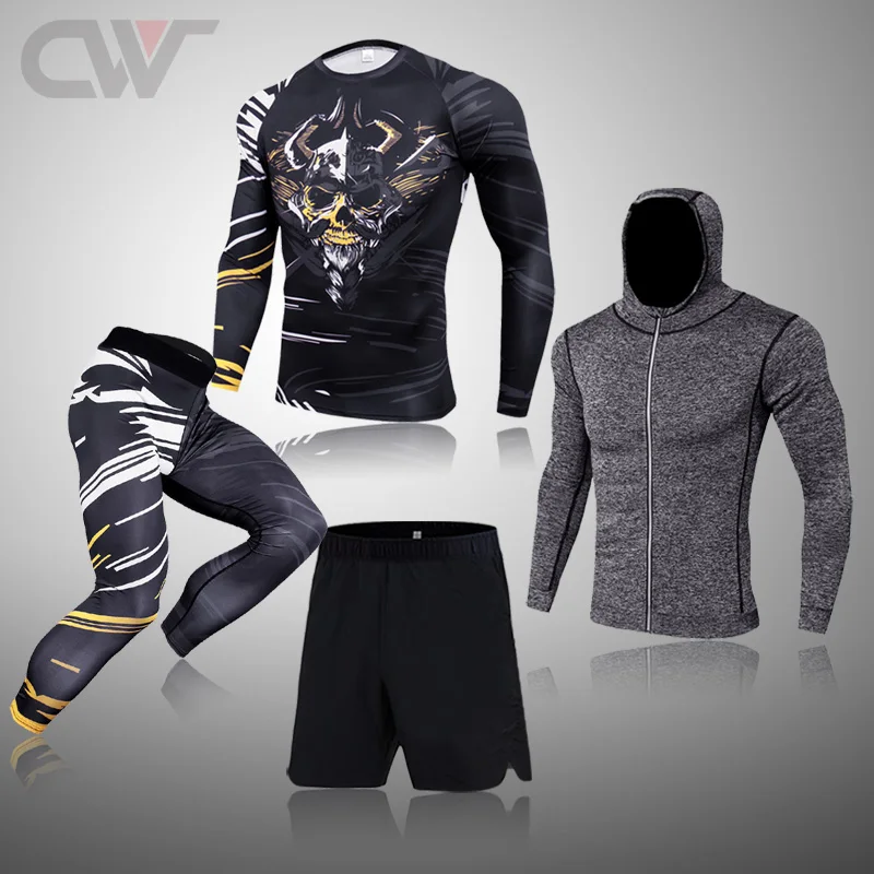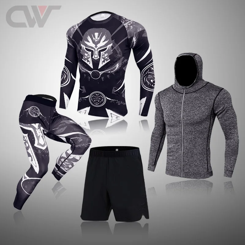 Мужской компрессионный 3D Спартанский комплект майка ММА мужские спортивные колготки леггинсы куртка фитнес бодибилдинг одежда тренировочный костюм для бега