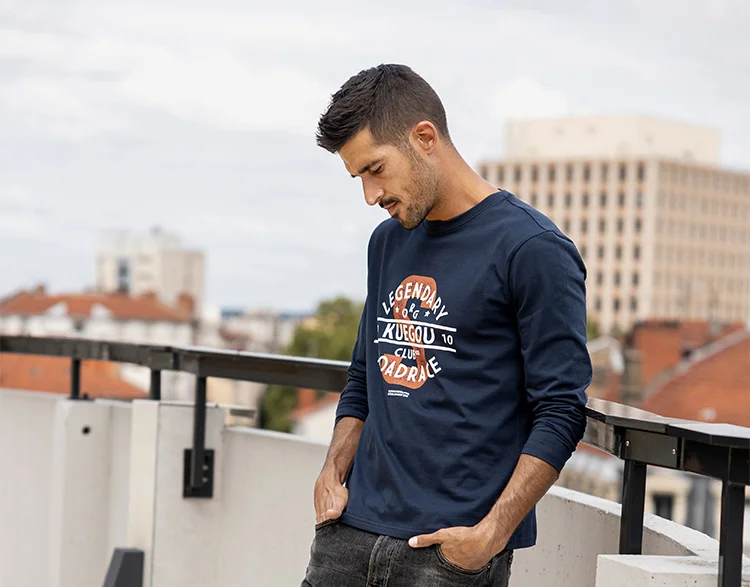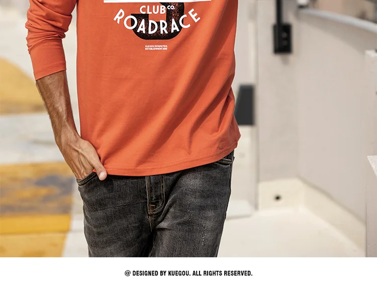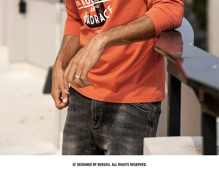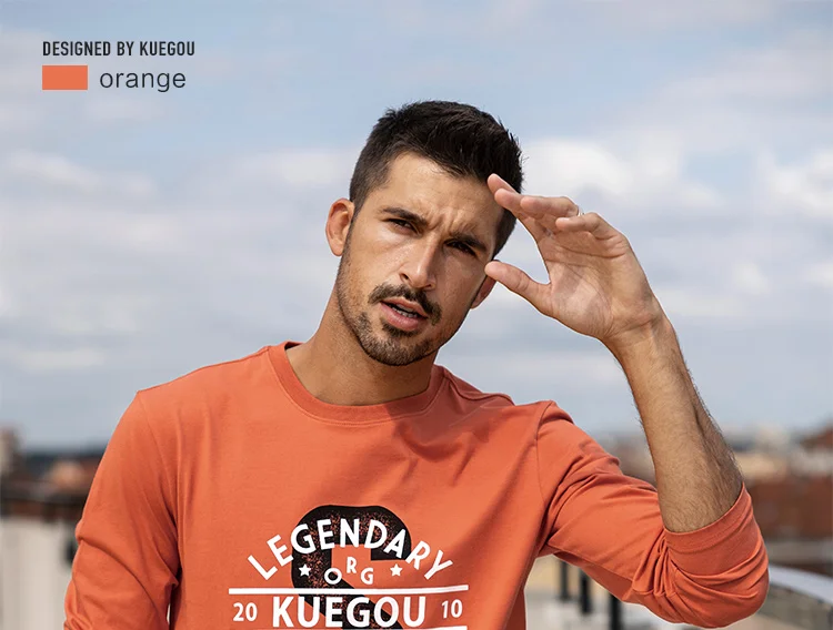 Футболка мужская с длинным рукавом KUEGOU, базовая тенниска из 100%...