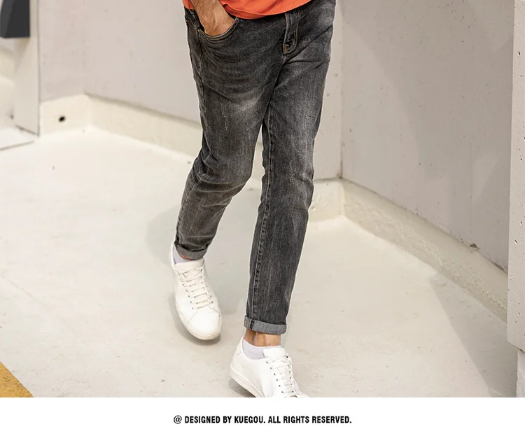 KUEGOU хлопчатобумажная одежда мужские рубашки стильное джинсовое п...