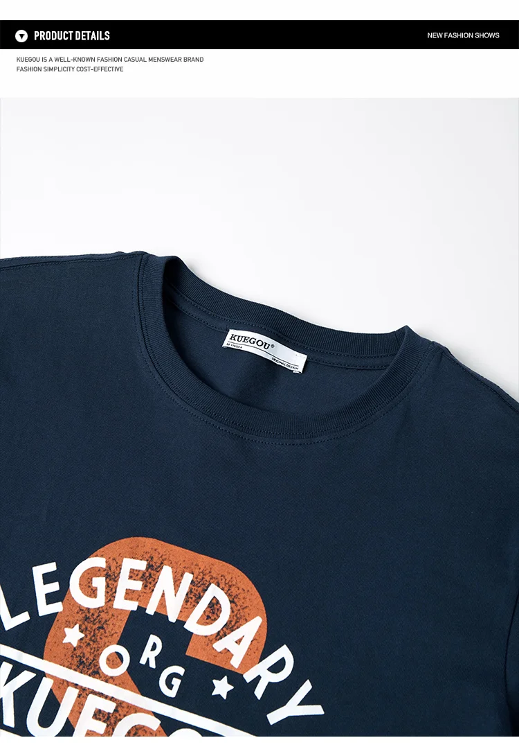 Мужская хлопковая футболка KUEGOU, летняя футболка с коротким рукав...