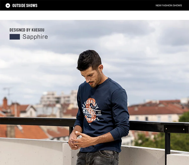 KUEGOU осенние толстовки, модная одежда, мужские свитшоты, джоггеры...