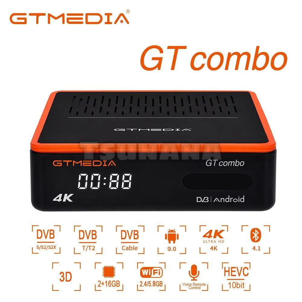 Спутниковый ТВ-приемник GTMEDIA GT Combo DVB-S2T2C, приемник ccam BT4.1, 4K, 8K, Android 9,0, ТВ-приставка 2 ГБ + 16 ГБ, M3U Ccam, встроенный Wi-Fi