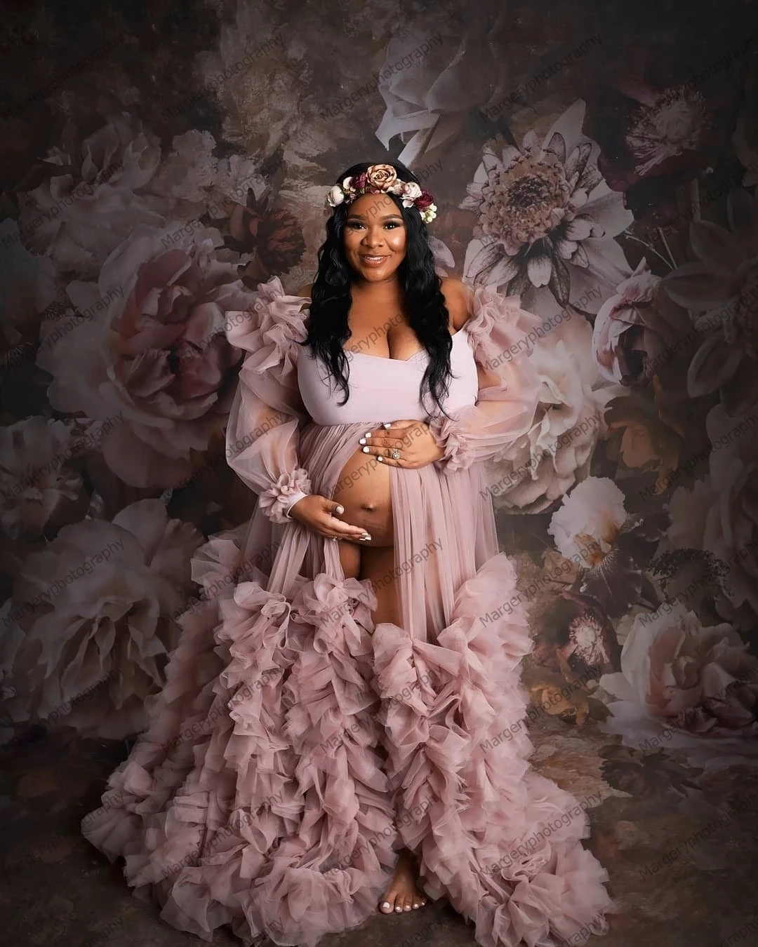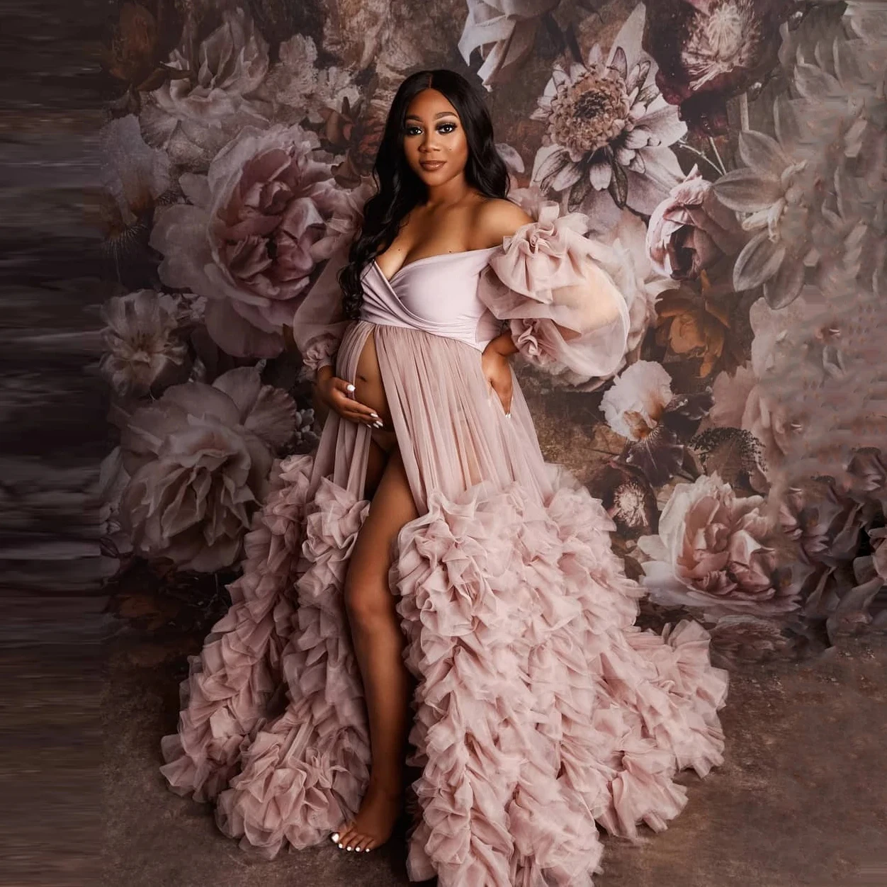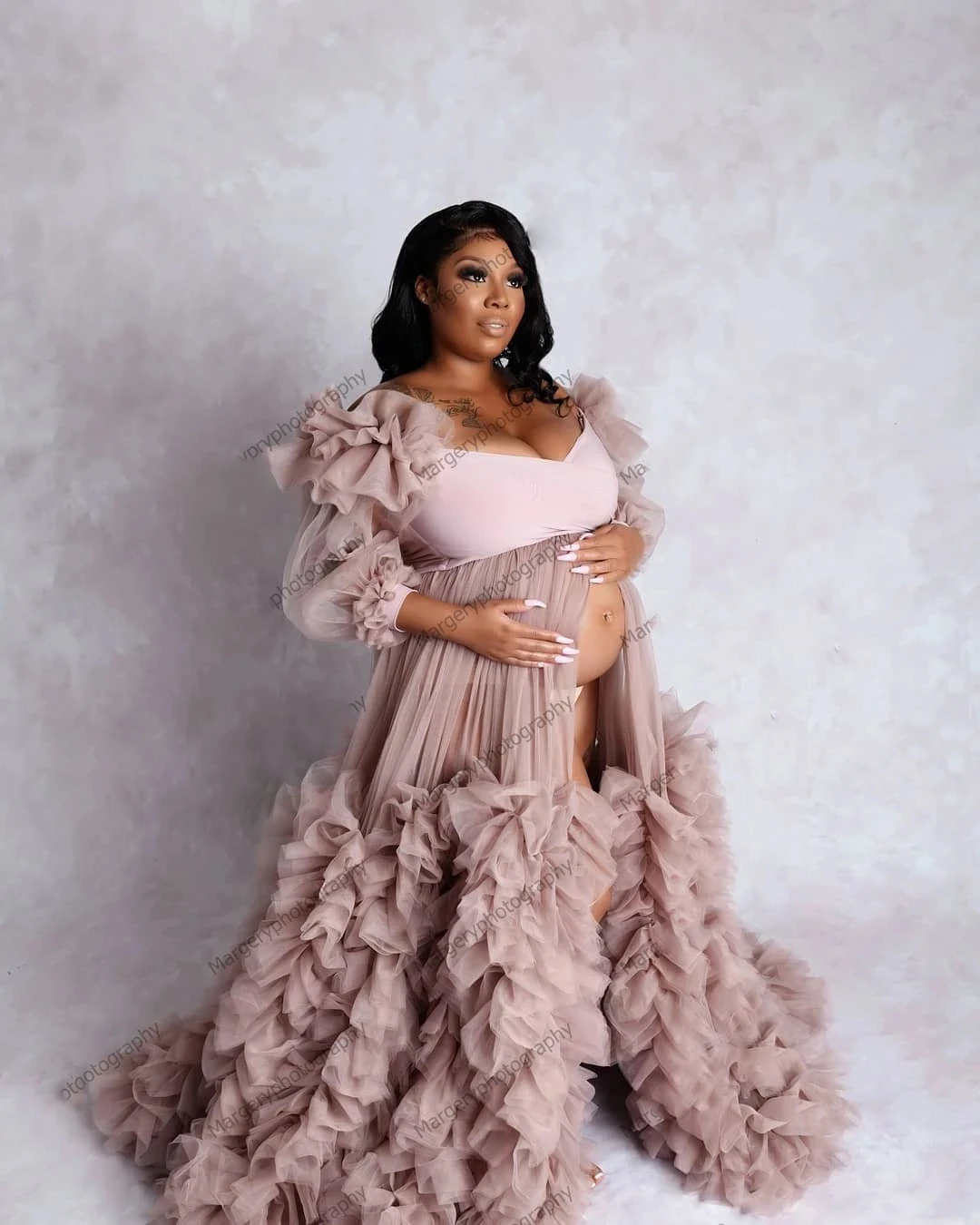 Очень Пышное Тюлевое платье для беременных для фотосъемки с оборкам...